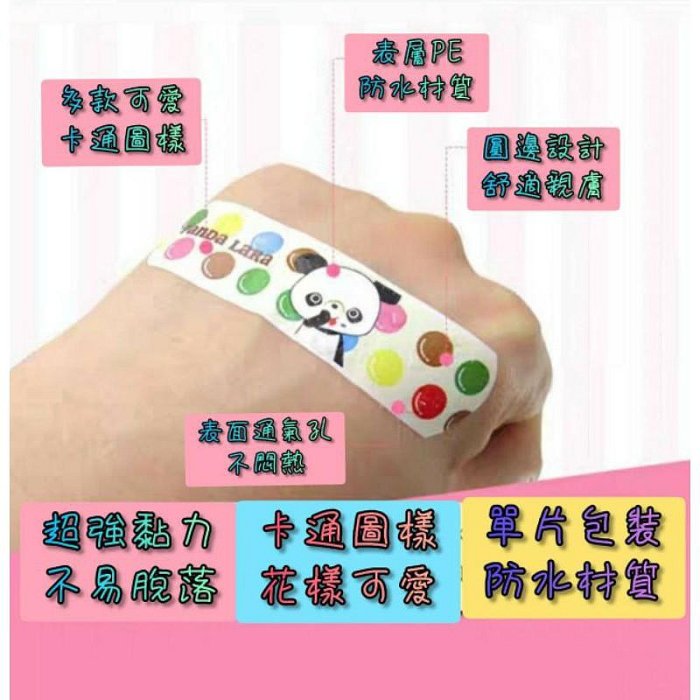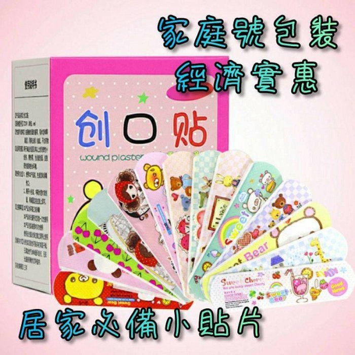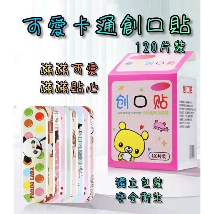 可愛卡通創口貼/獨立包裝-120片裝生活裡的必備小貼片卡通可愛圖案,花色繁多微孔舒適透氣,高彈性親膚不刺激,時尚又可愛黏性強,不易捲邊,不易脫落表層PE材質,可防水,單片獨立包裝,120片家庭號。