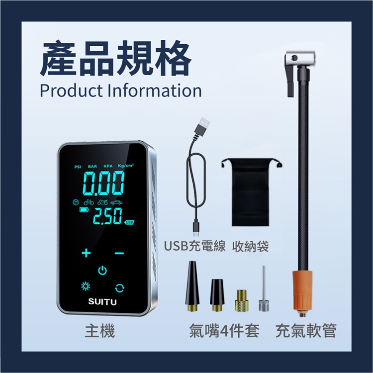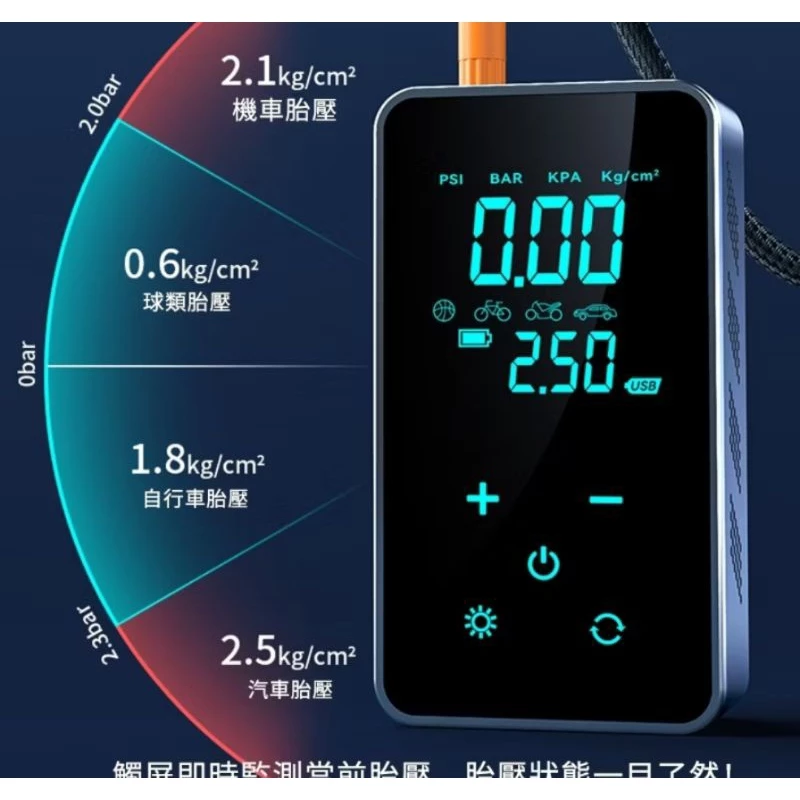 支援多種壓力單位(PSI / BAR / KPA / Kg/cm²),顯示清晰。