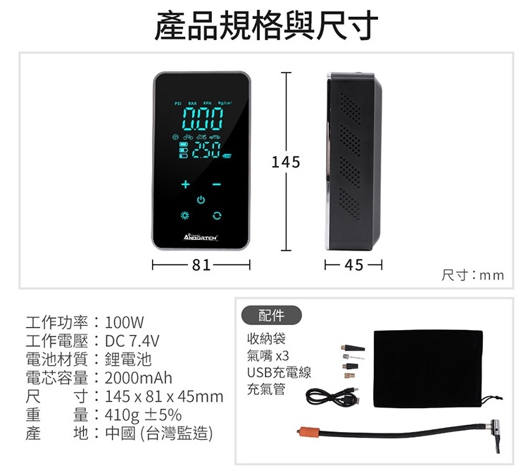 可快速為汽車、機車、自行車、球類等充氣。