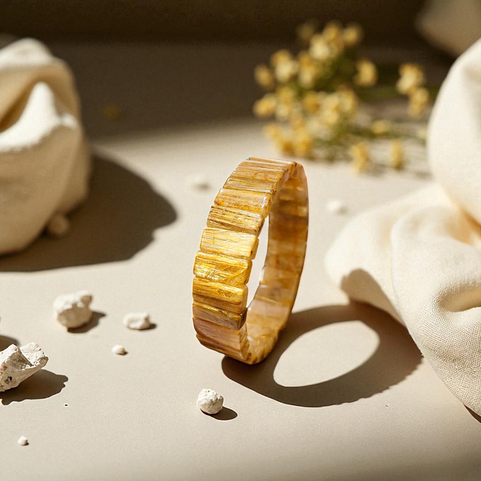 3. 鈦晶:又稱「金髮晶」,內含金黃色的針狀包裹體,象徵財富與貴人緣,有助於開拓財源、提升事業運。