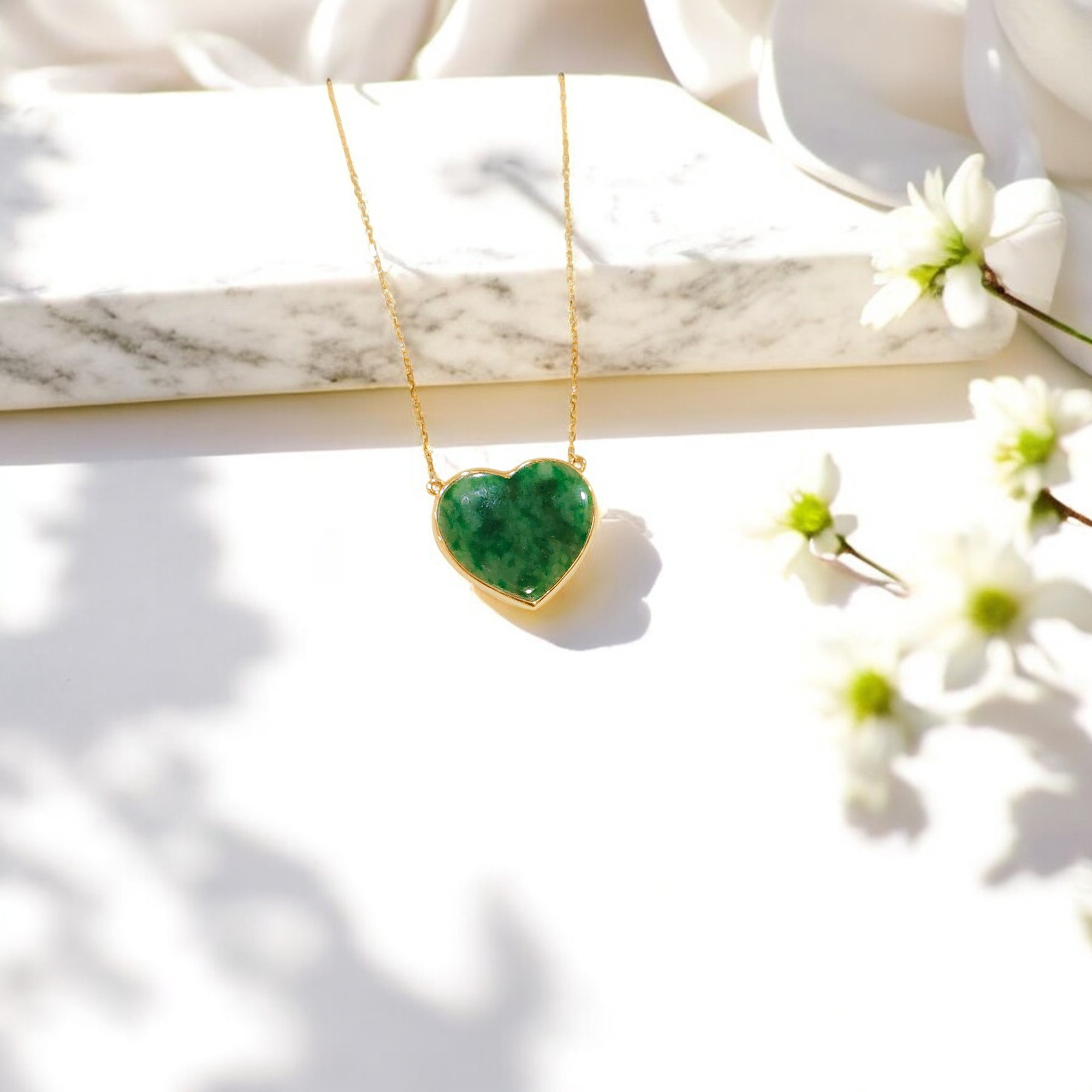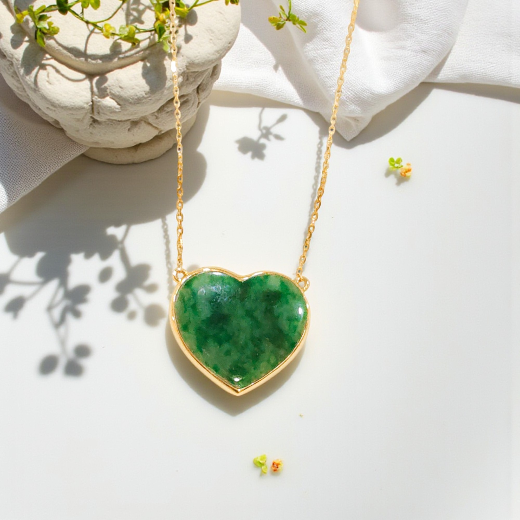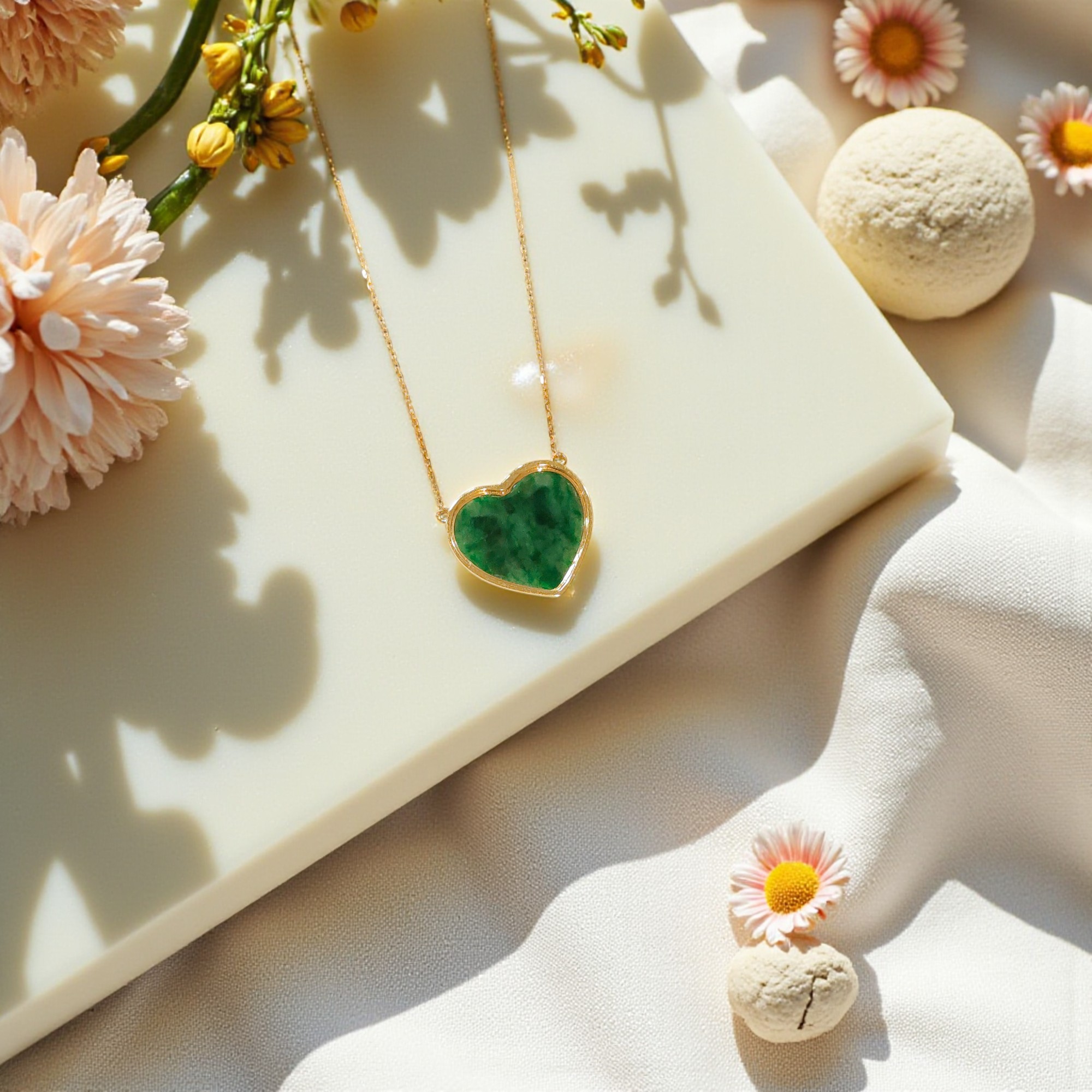 天然A貨翡翠愛心項鍊18K