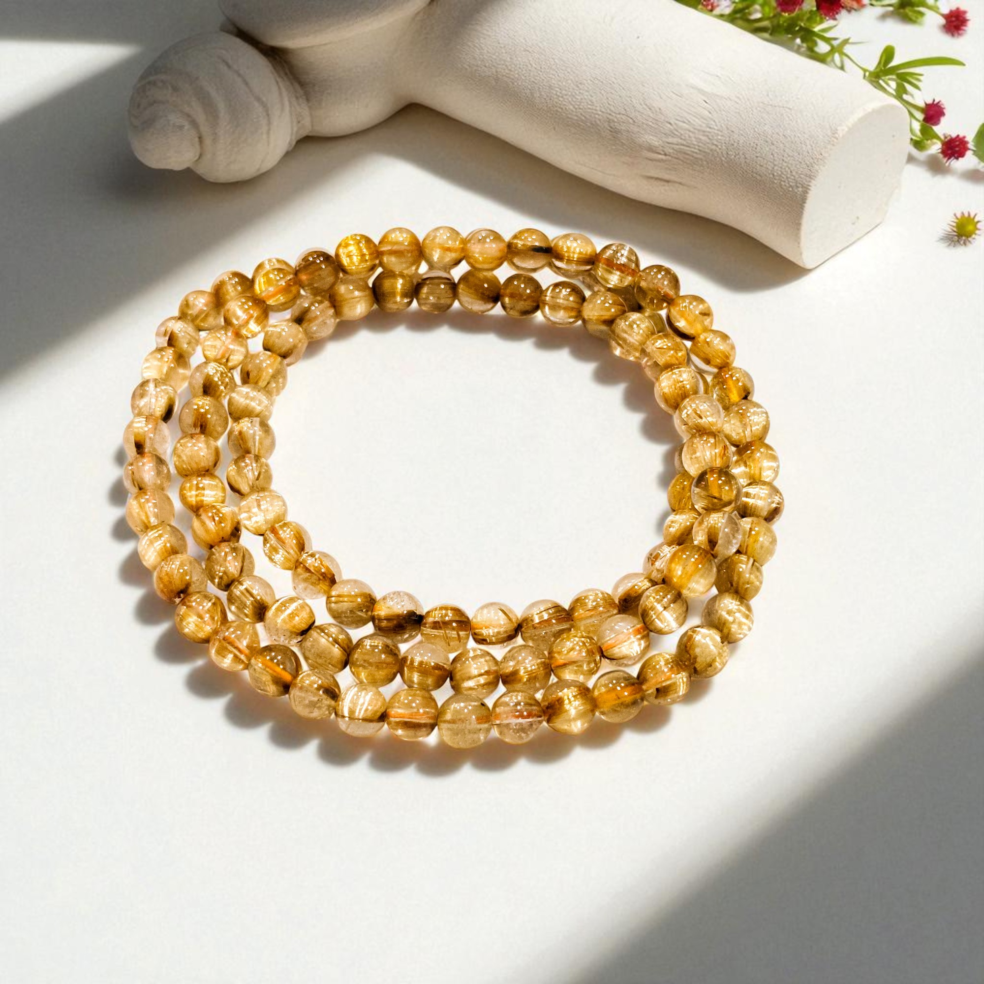 3. 鈦晶:又稱「金髮晶」,內含金黃色的針狀包裹體,象徵財富與貴人緣,有助於開拓財源、提升事業運。