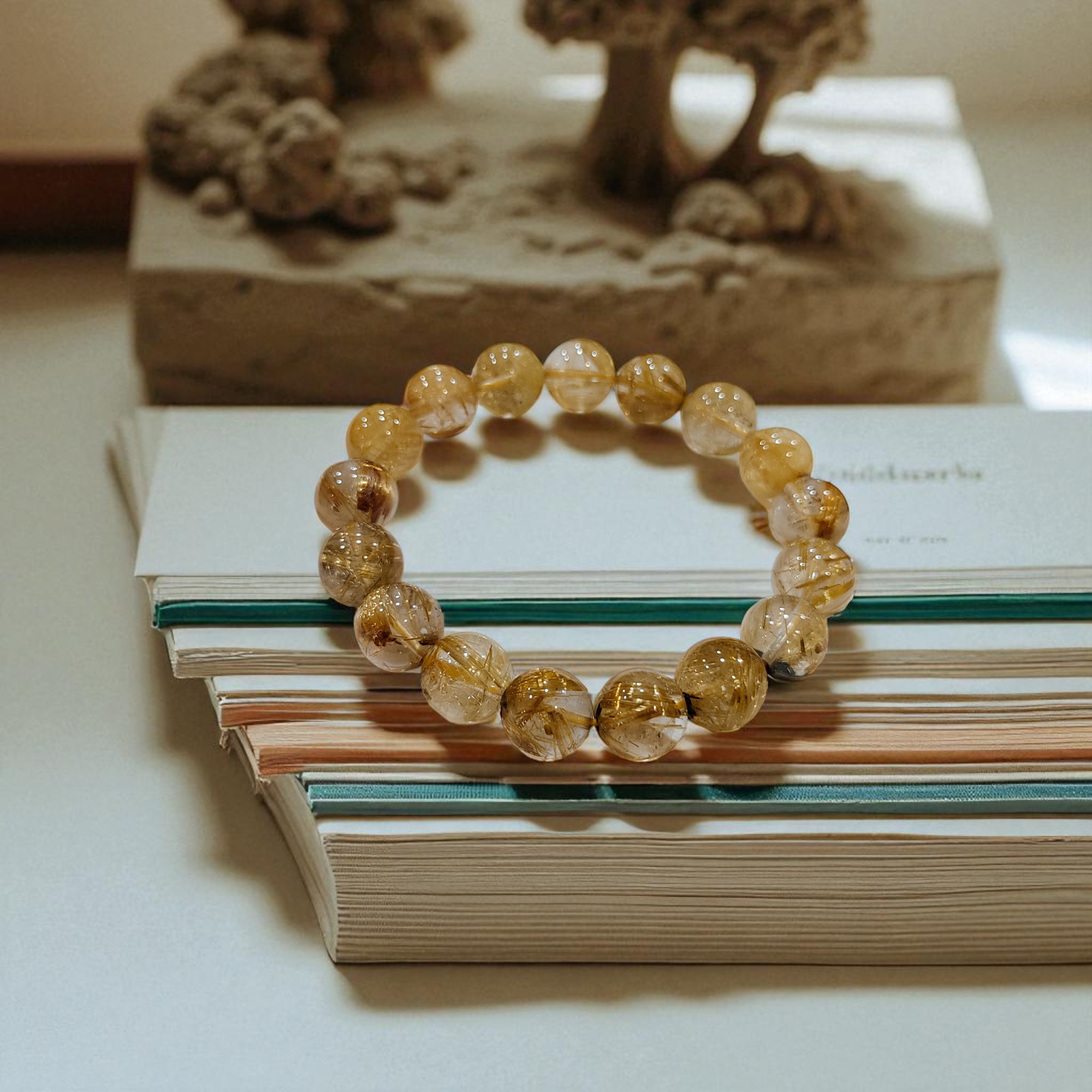 3. 鈦晶:又稱「金髮晶」,內含金黃色的針狀包裹體,象徵財富與貴人緣,有助於開拓財源、提升事業運。