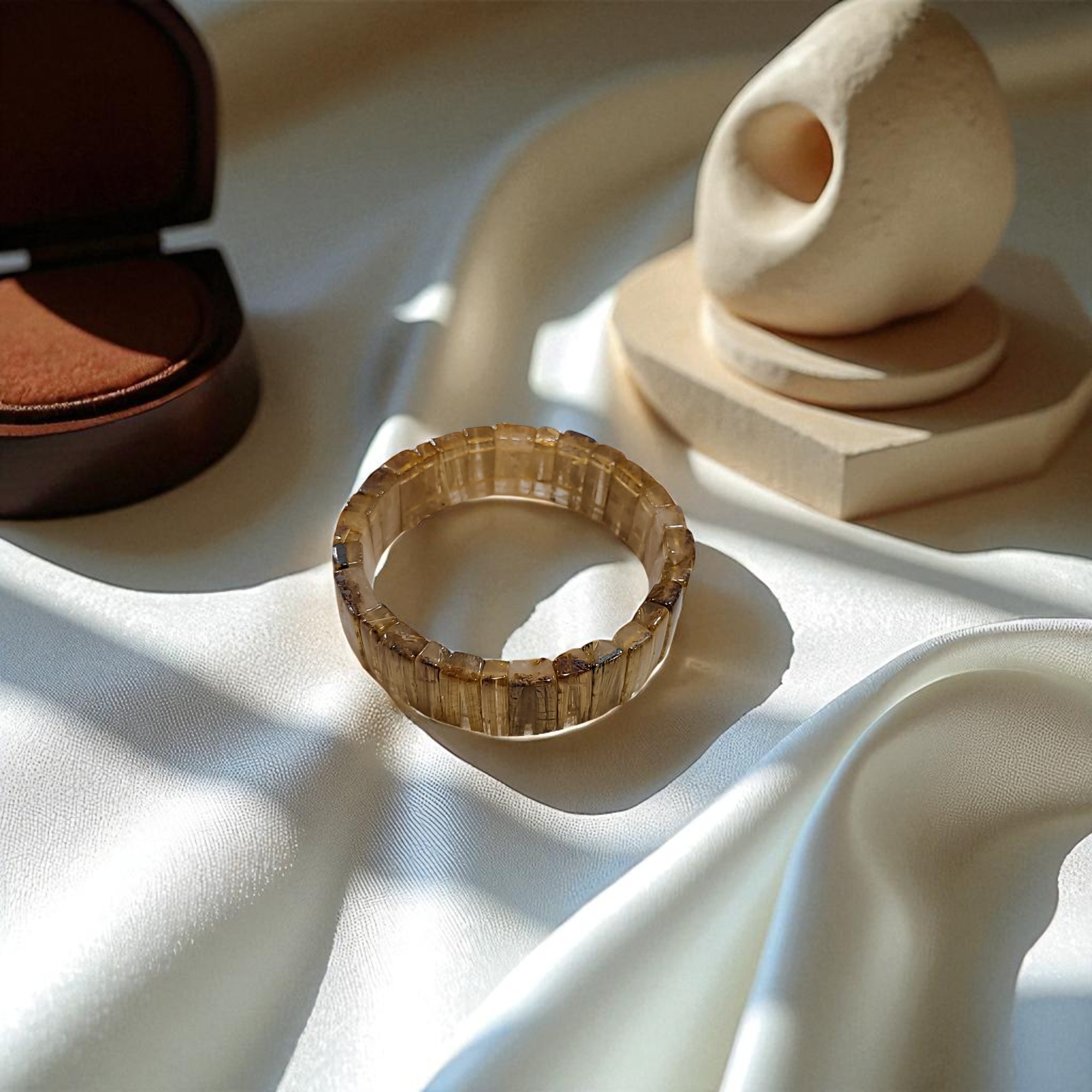 3. 鈦晶:又稱「金髮晶」,內含金黃色的針狀包裹體,象徵財富與貴人緣,有助於開拓財源、提升事業運。