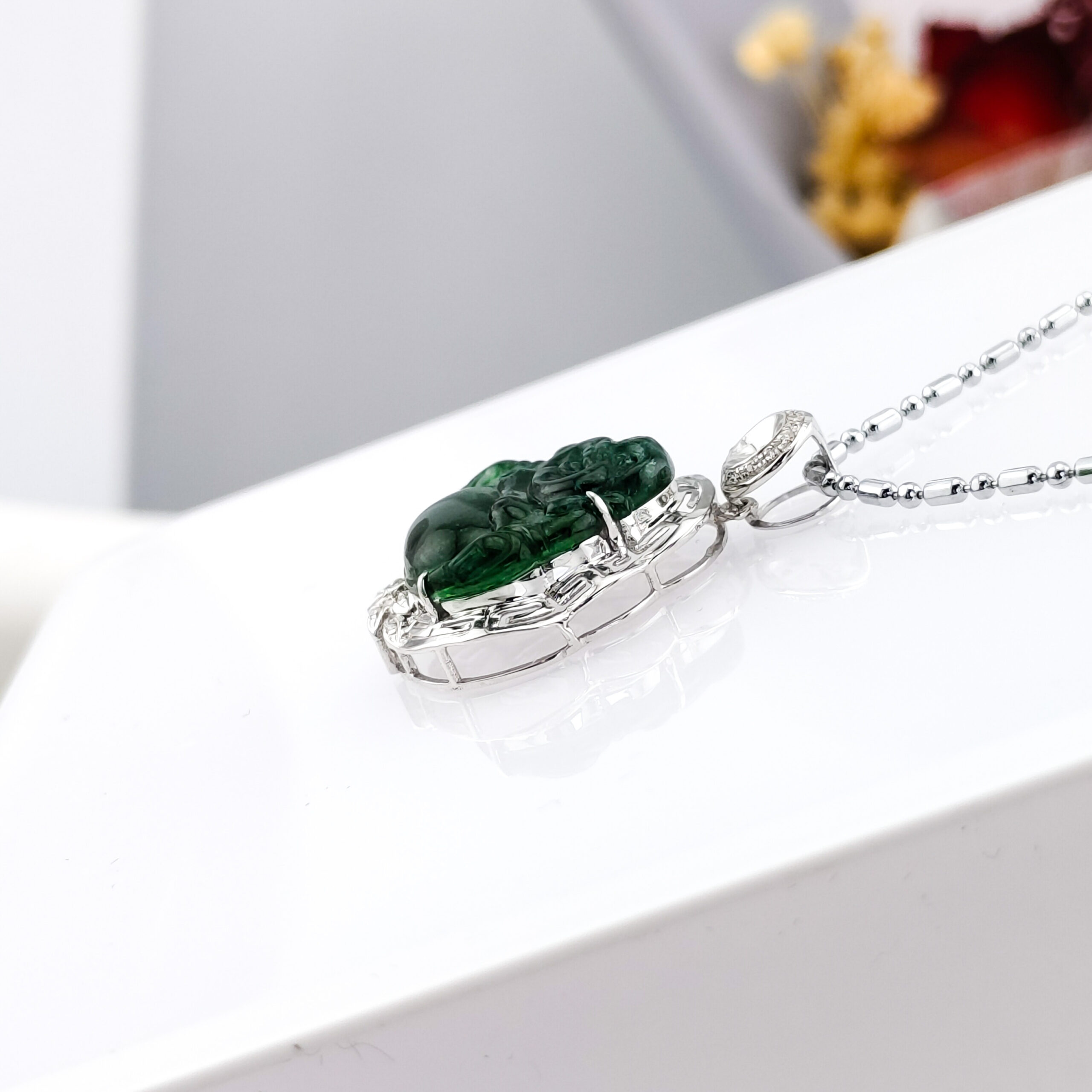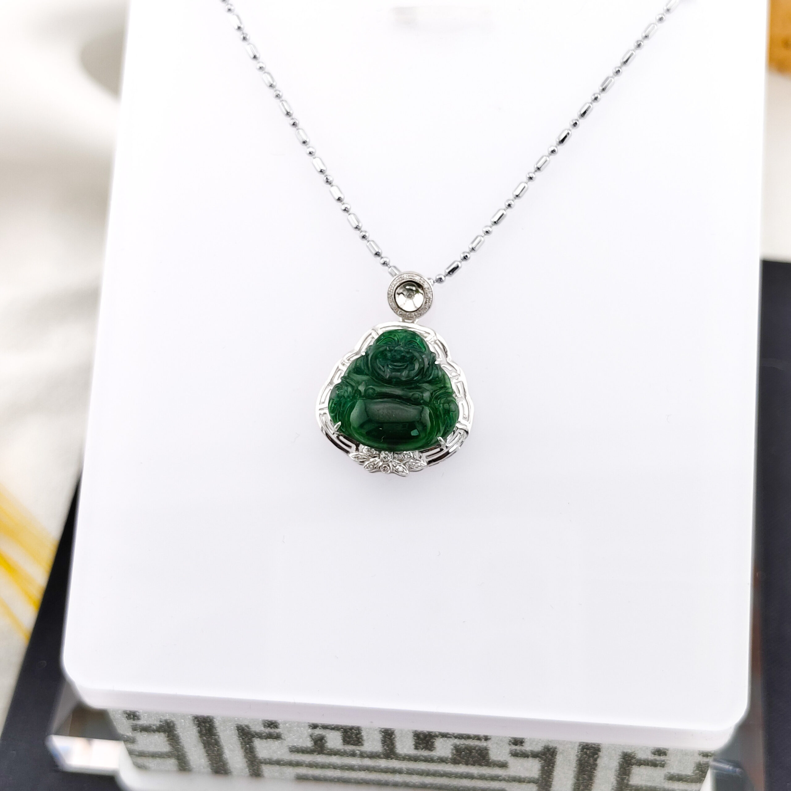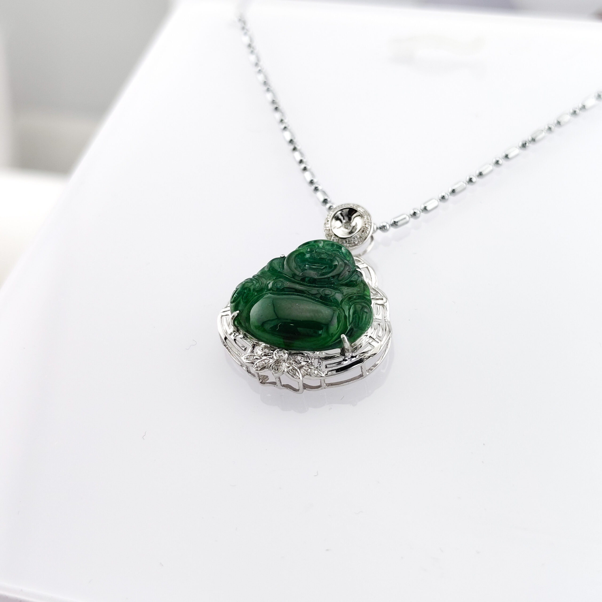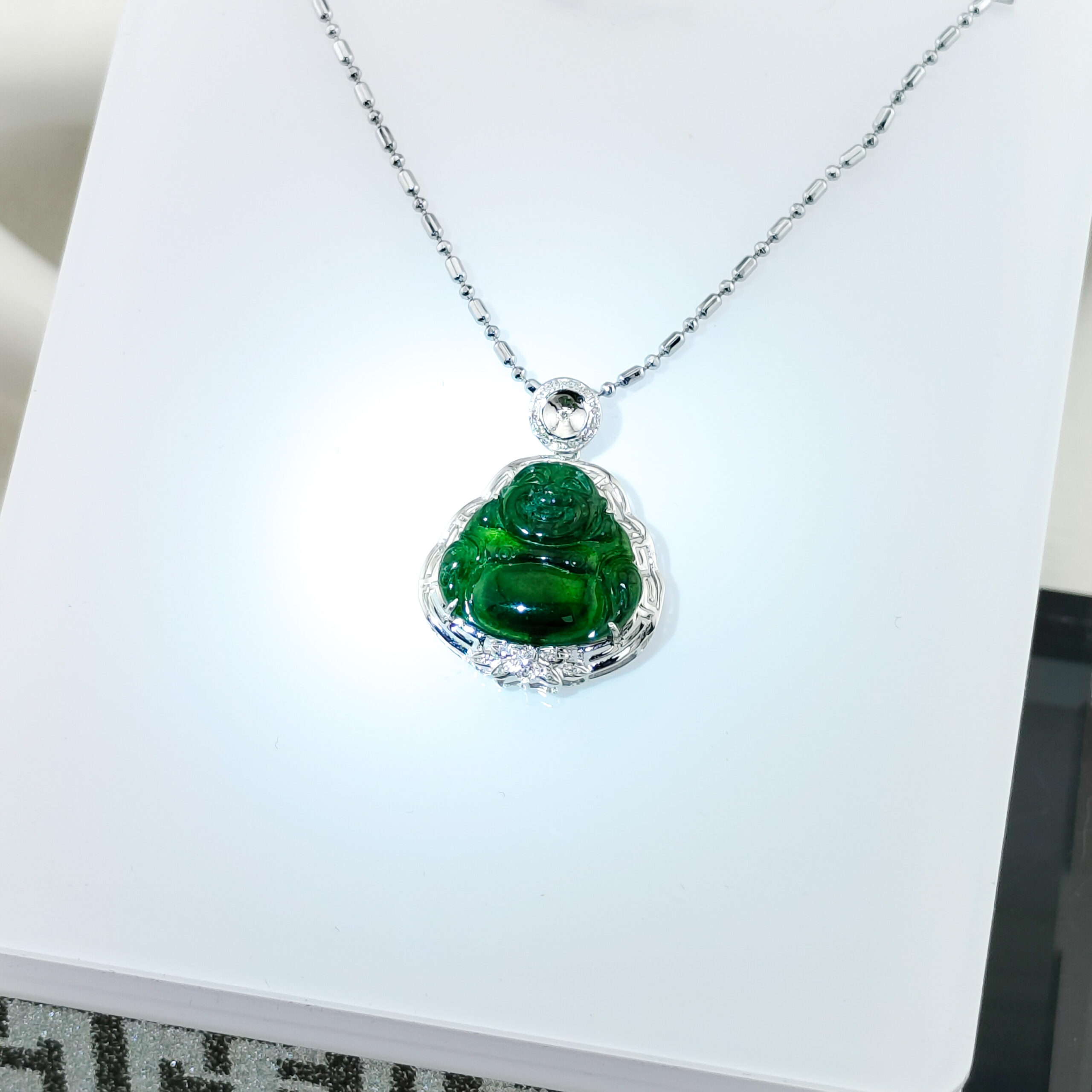 天然冰種翡翠A貨描彌勒吊墜