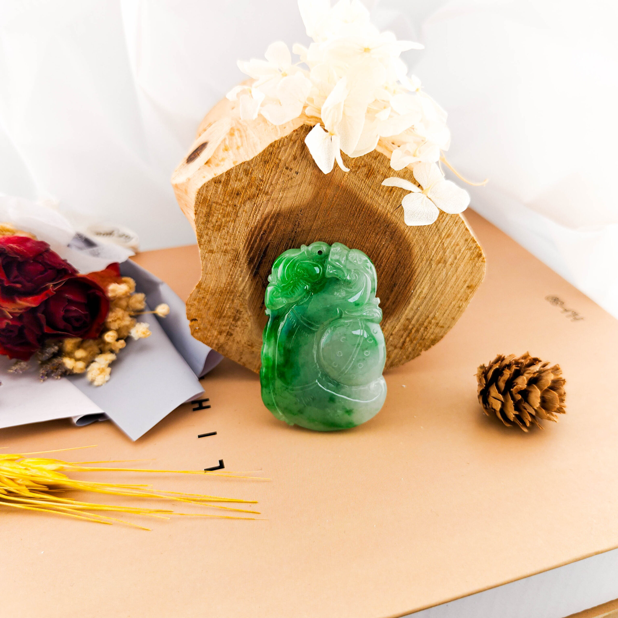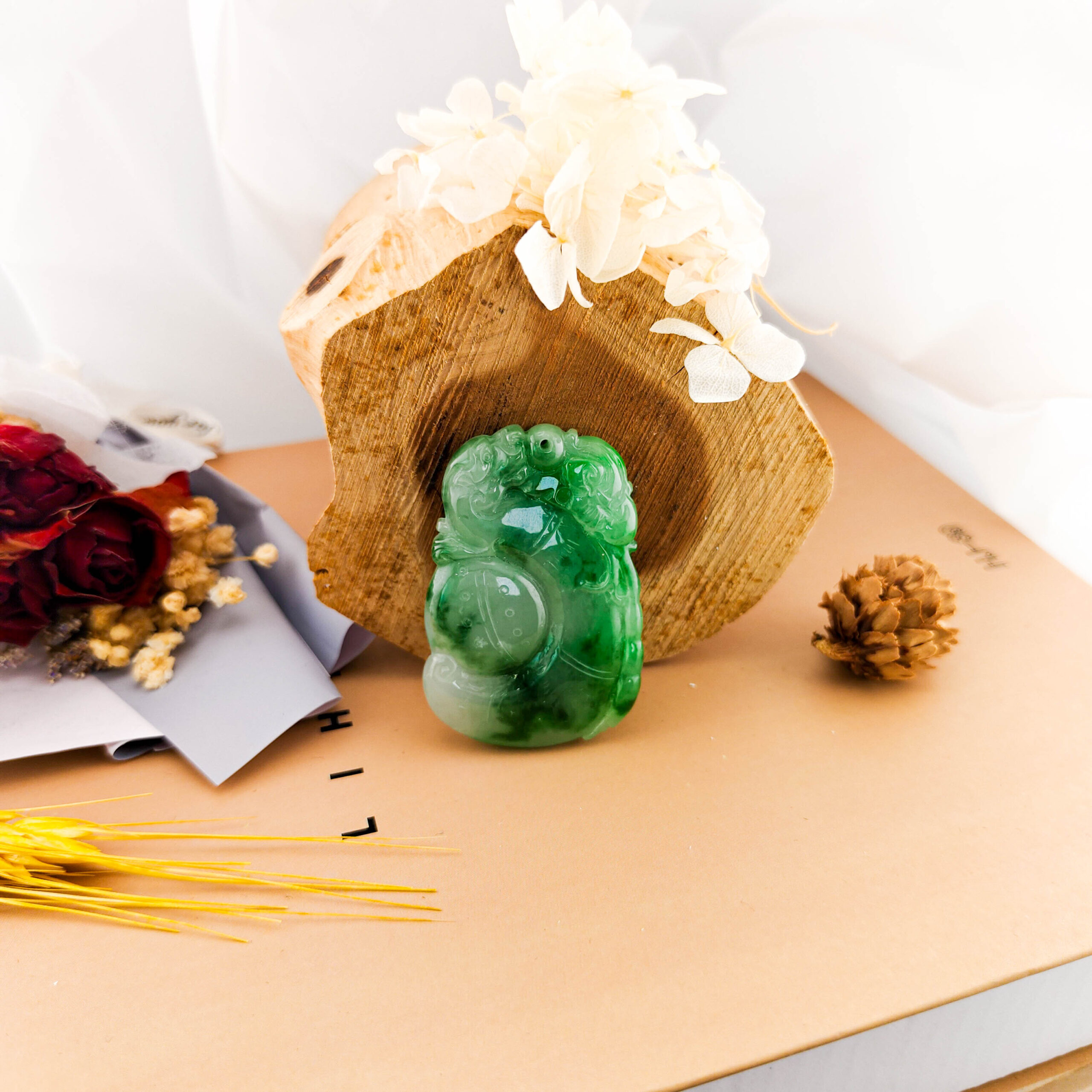 翡翠主石: 52mm X 34.7mm X 7.4mm