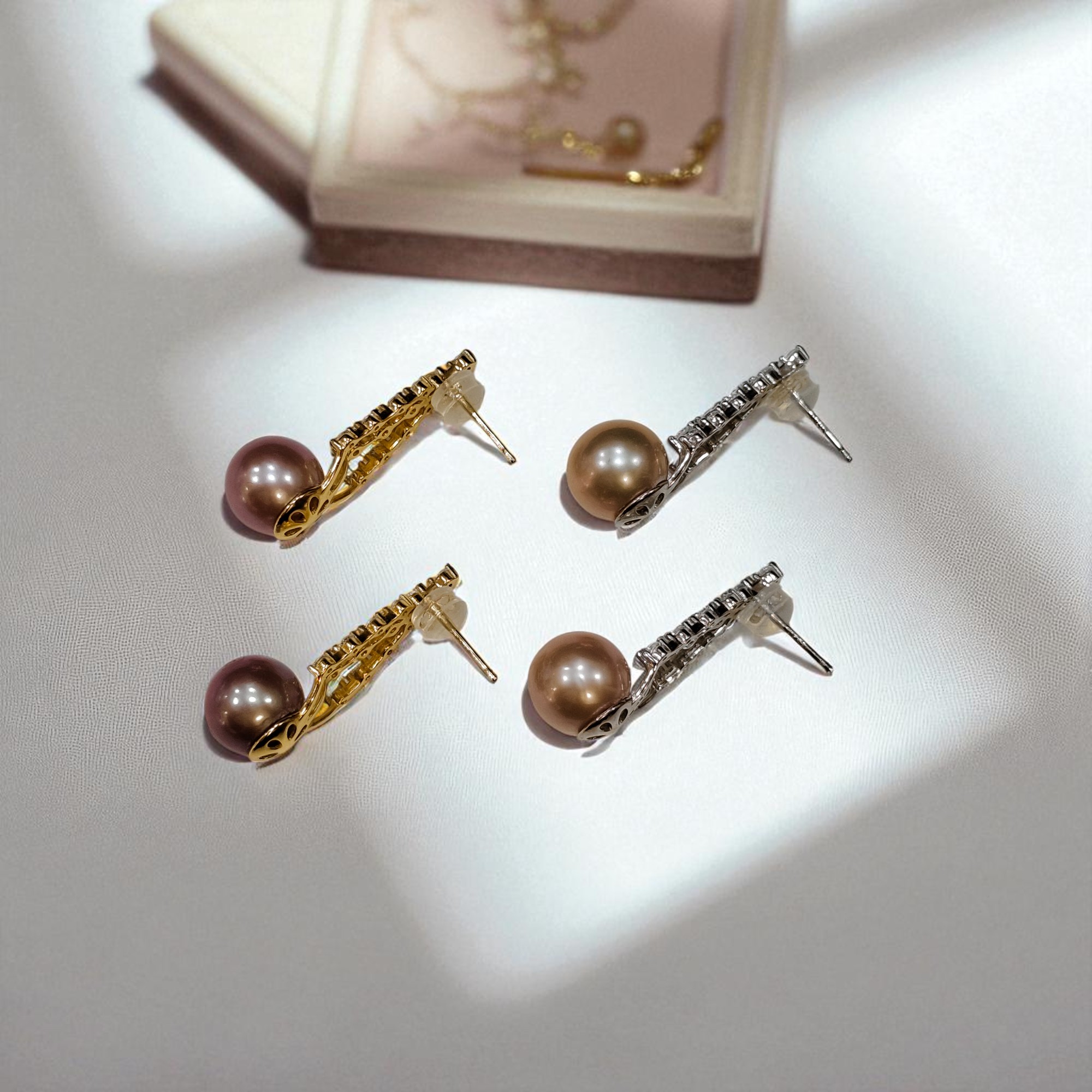 珍珠的光澤是從內部散發出來的光芒。這種光暈被稱為虹彩。這樣的光澤是由牡蠣本身分泌出的許多層晶體狀物質 – 晶體結構產生干涉及繞射所造成。珍珠母的質量與厚度賦予珍珠光澤和由內而外的光輝,珍珠表面上反射的光與珍珠內每層珍珠層之間折射的光的結合,都成就了每一顆獨一無二的珍珠。光澤具有將其他瑕疵降至最低的魔力,被認為是珍珠的靈魂,南洋珍珠因擁有市場上最好的光澤而聞名。