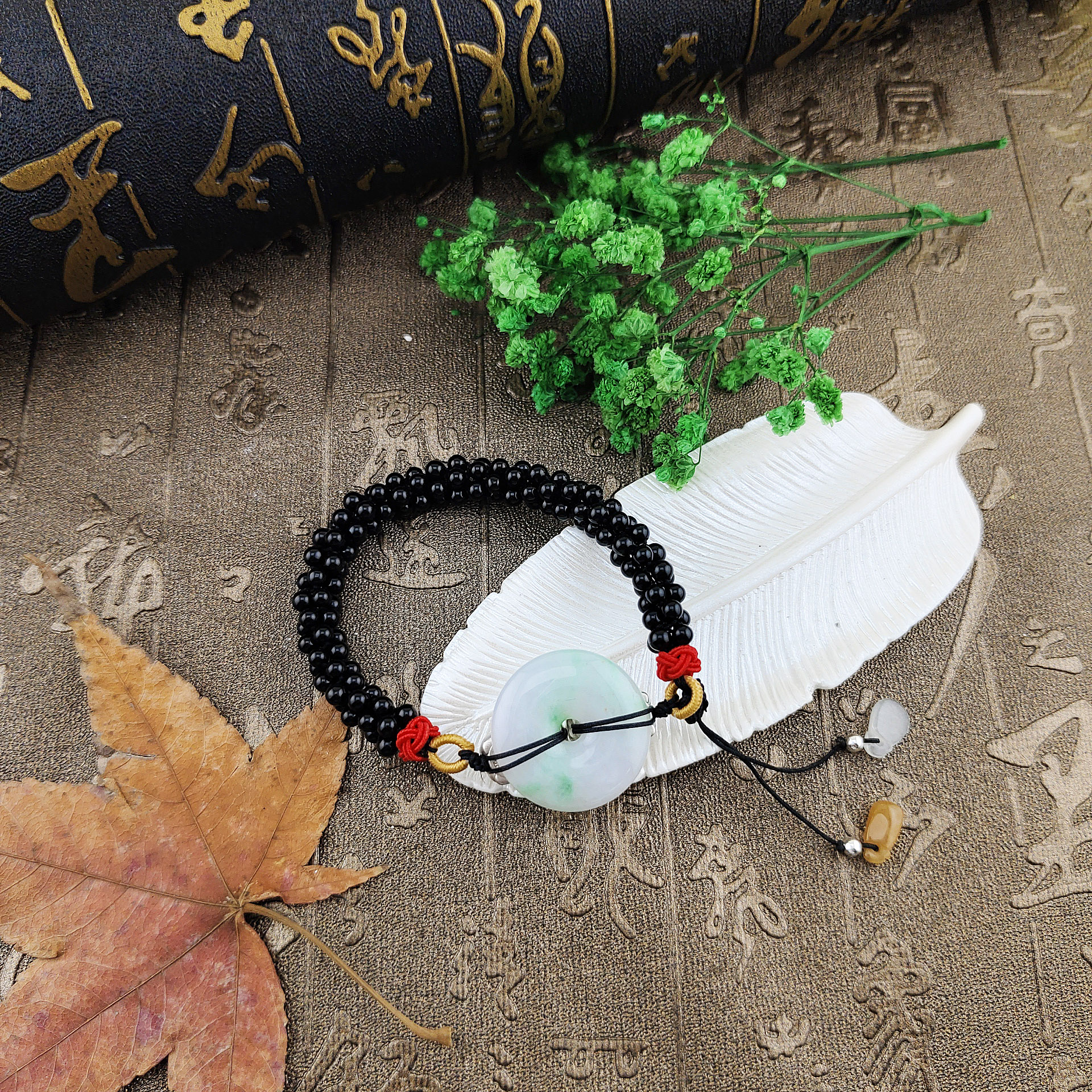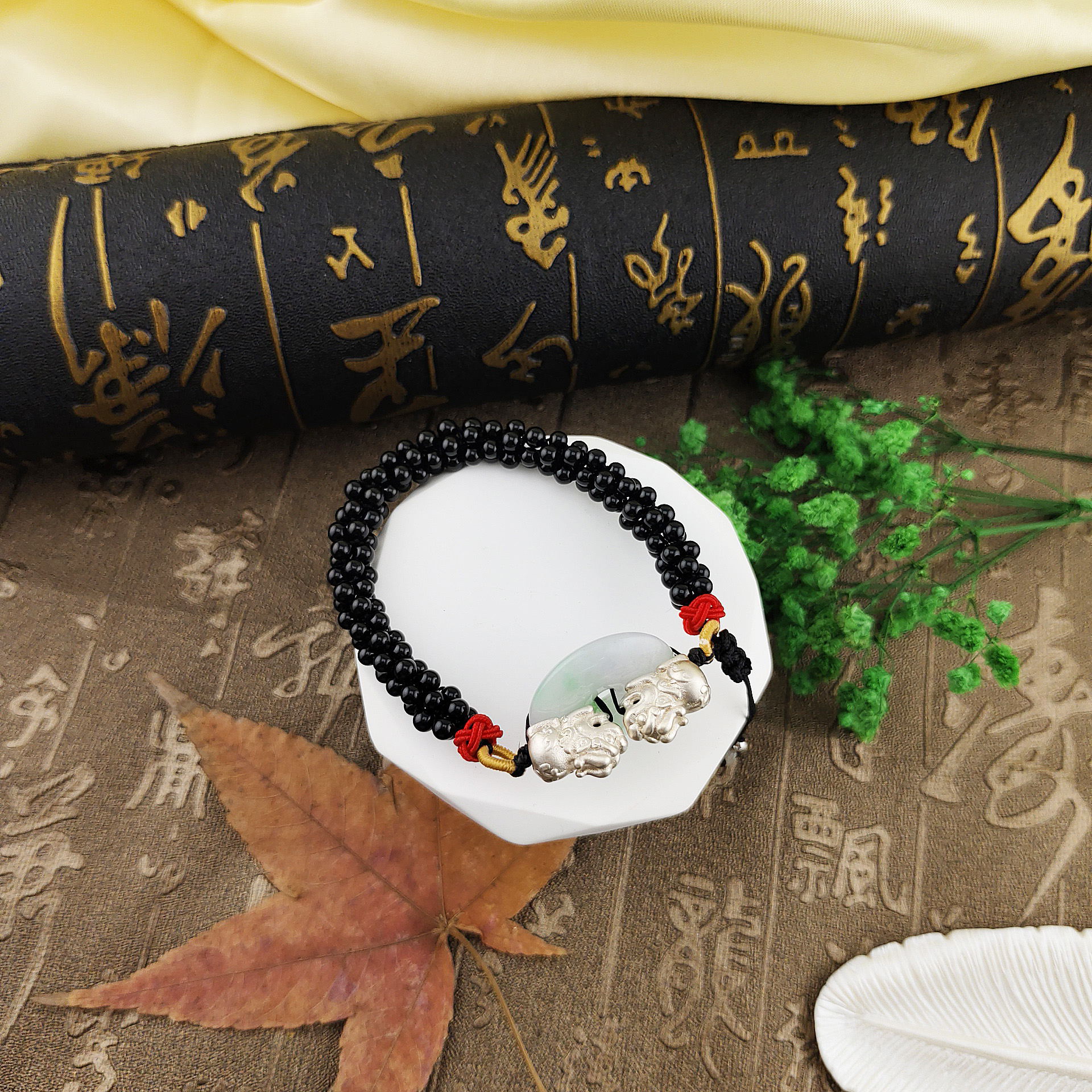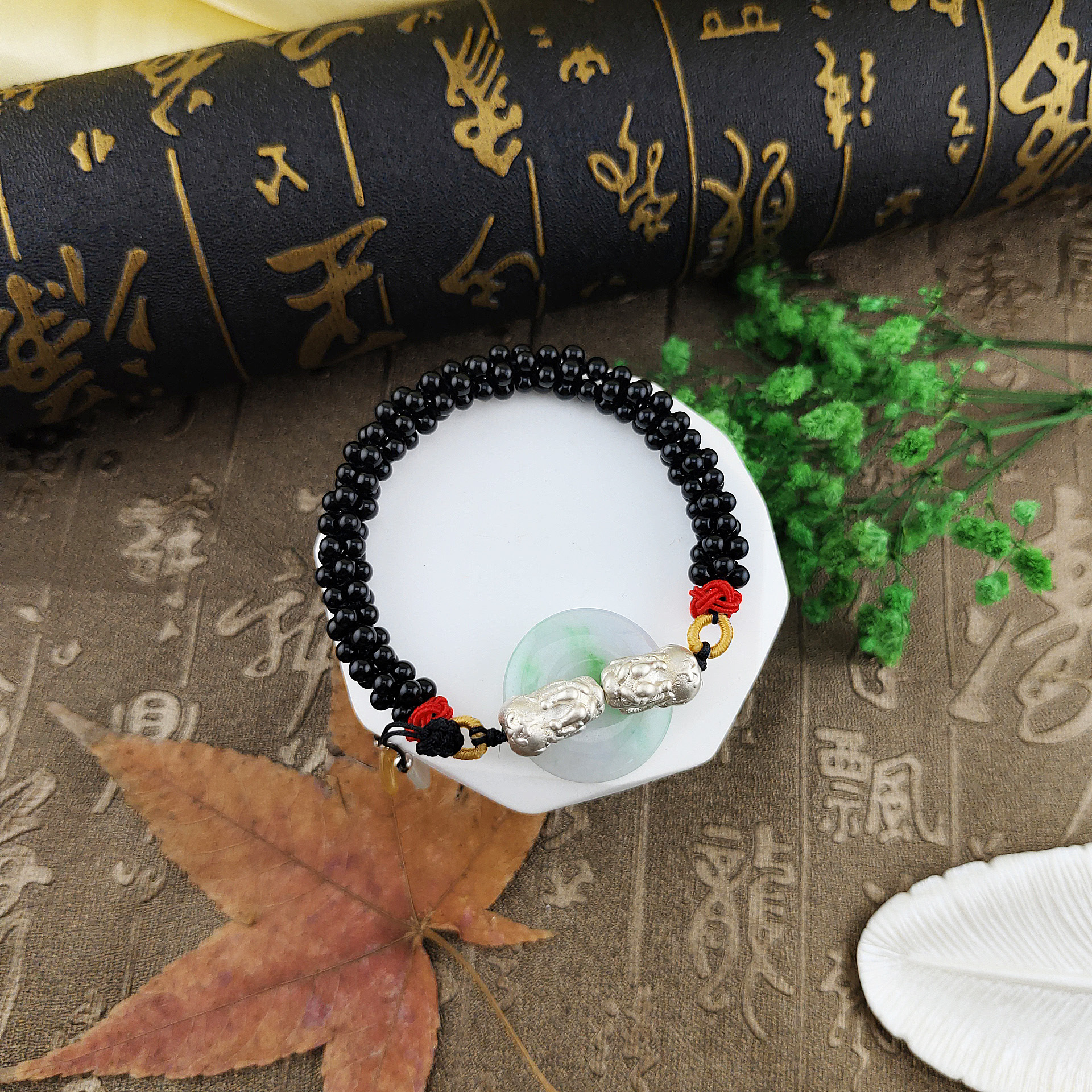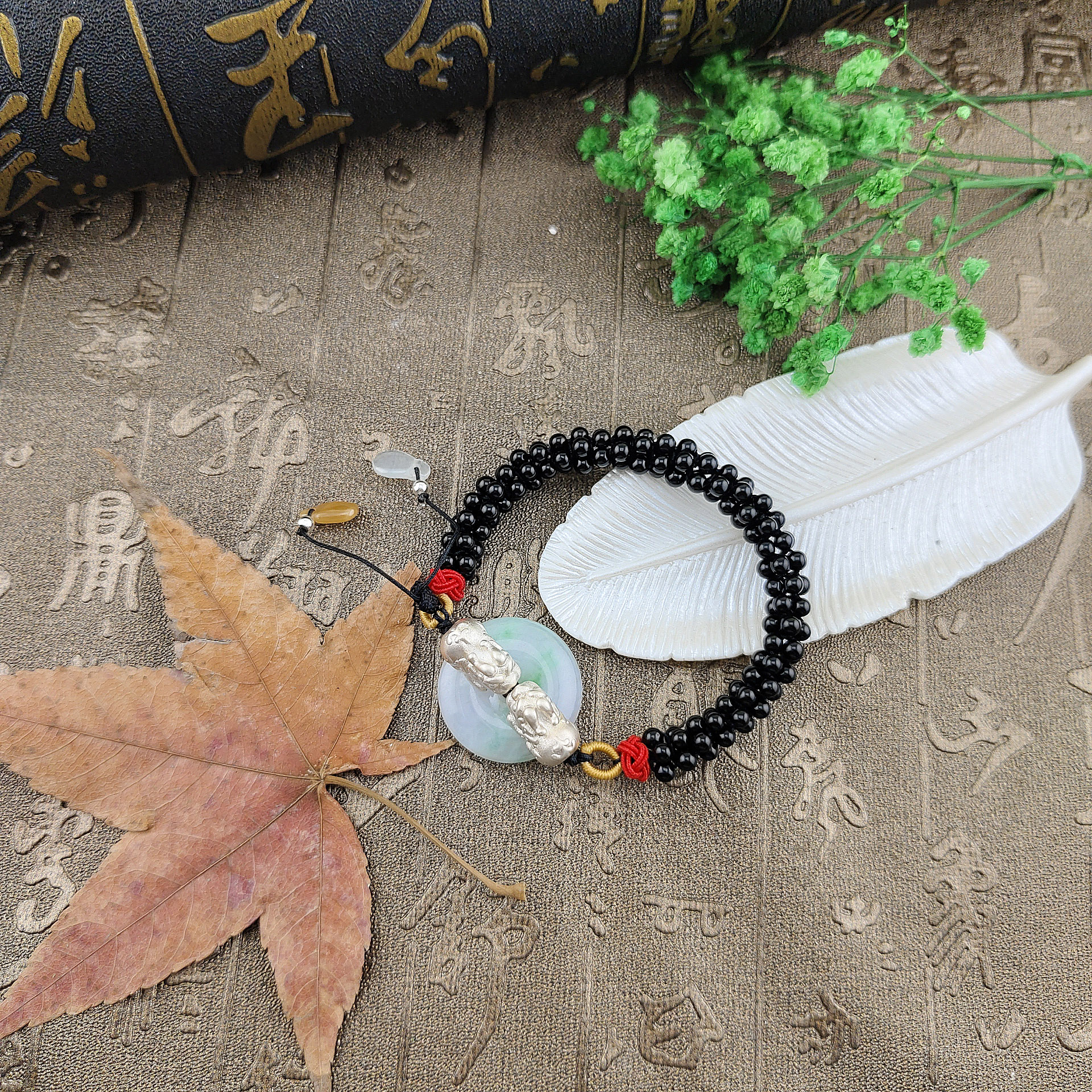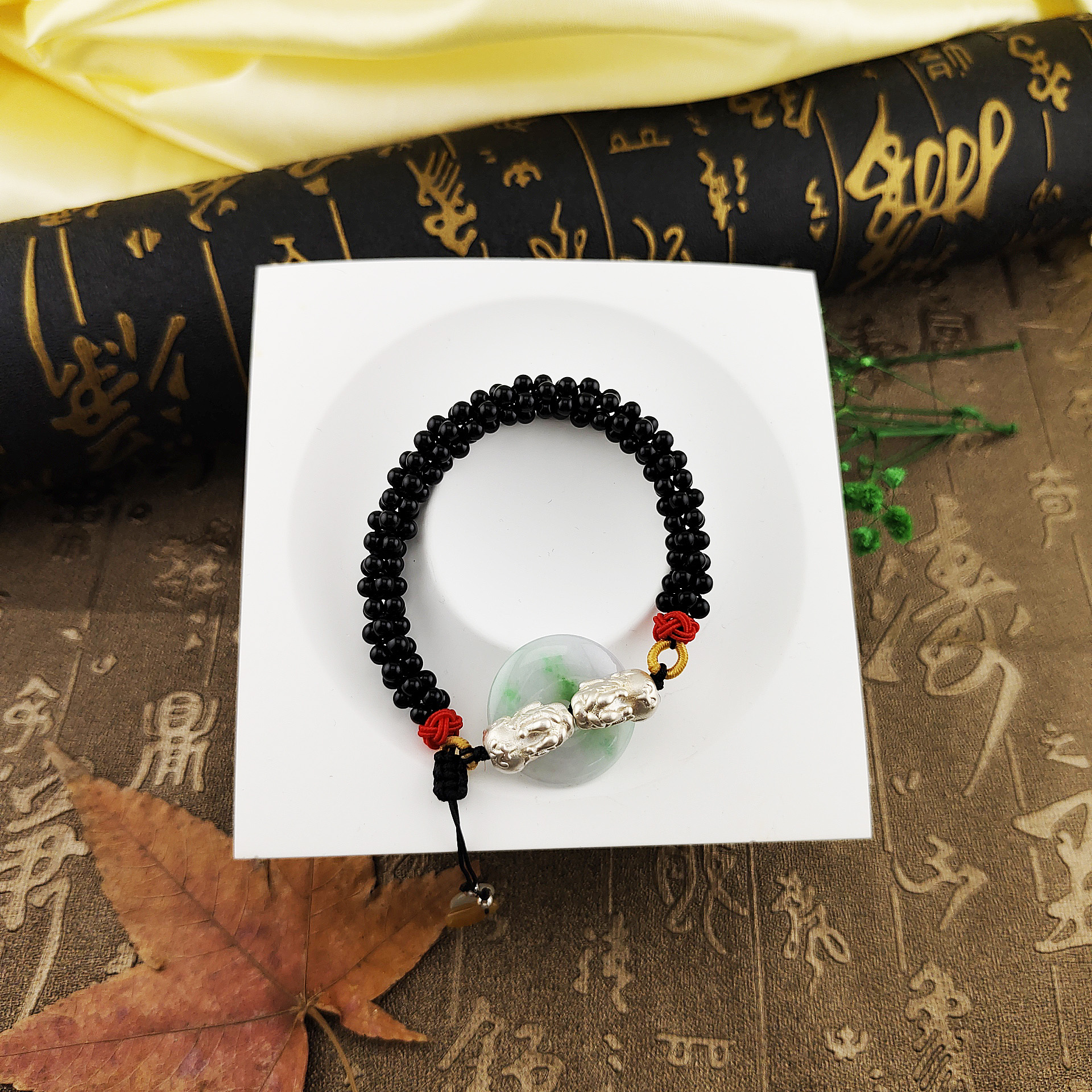 天然翡翠A貨平安扣+純銀貔貅手鍊