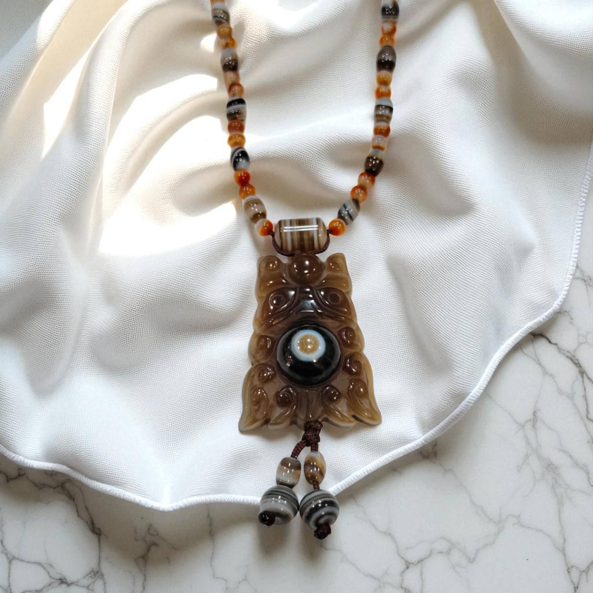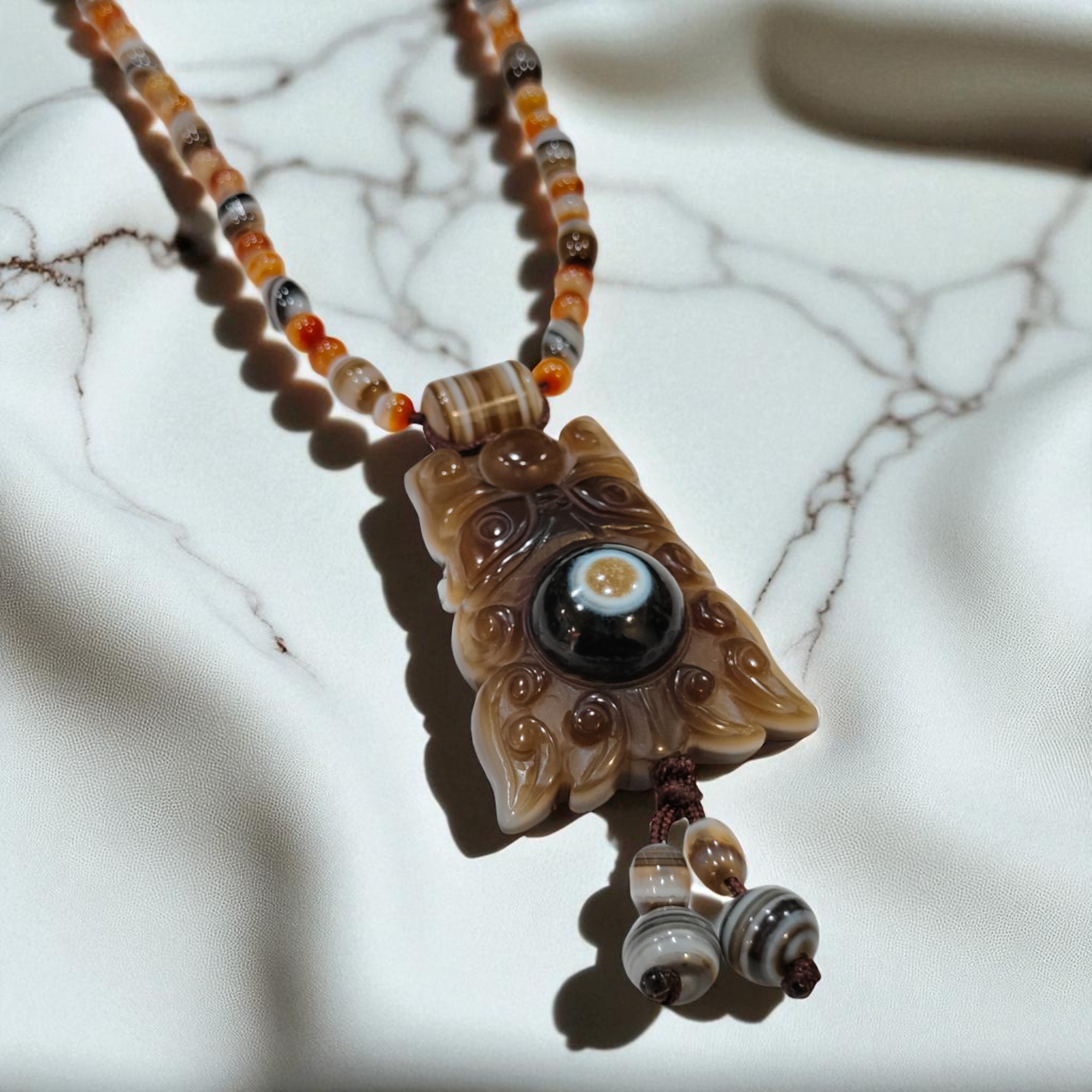 總之,天然瑪瑙天眼天珠是一種具有悠久歷史和獨特文化意義的寶石,其獨特的眼狀紋飾和神秘的能量使其成為備受推崇的護身符和收藏品。