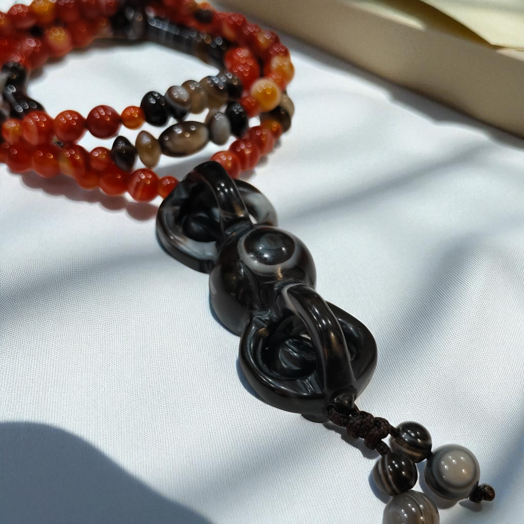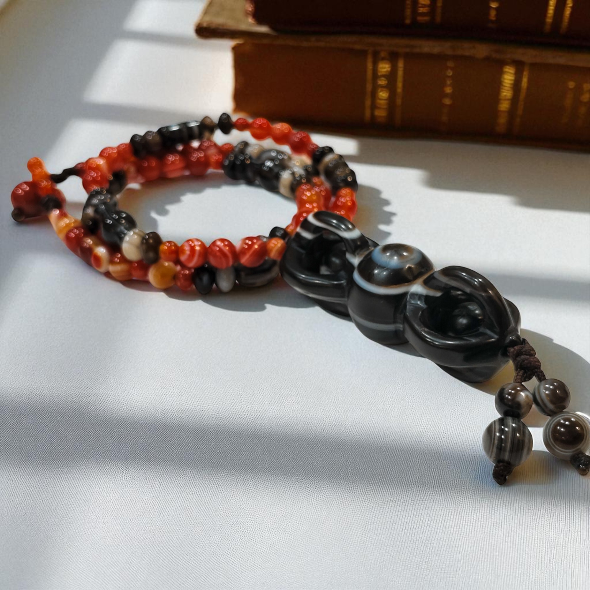 總之,天然瑪瑙天眼天珠是一種具有悠久歷史和獨特文化意義的寶石,其獨特的眼狀紋飾和神秘的能量使其成為備受推崇的護身符和收藏品。