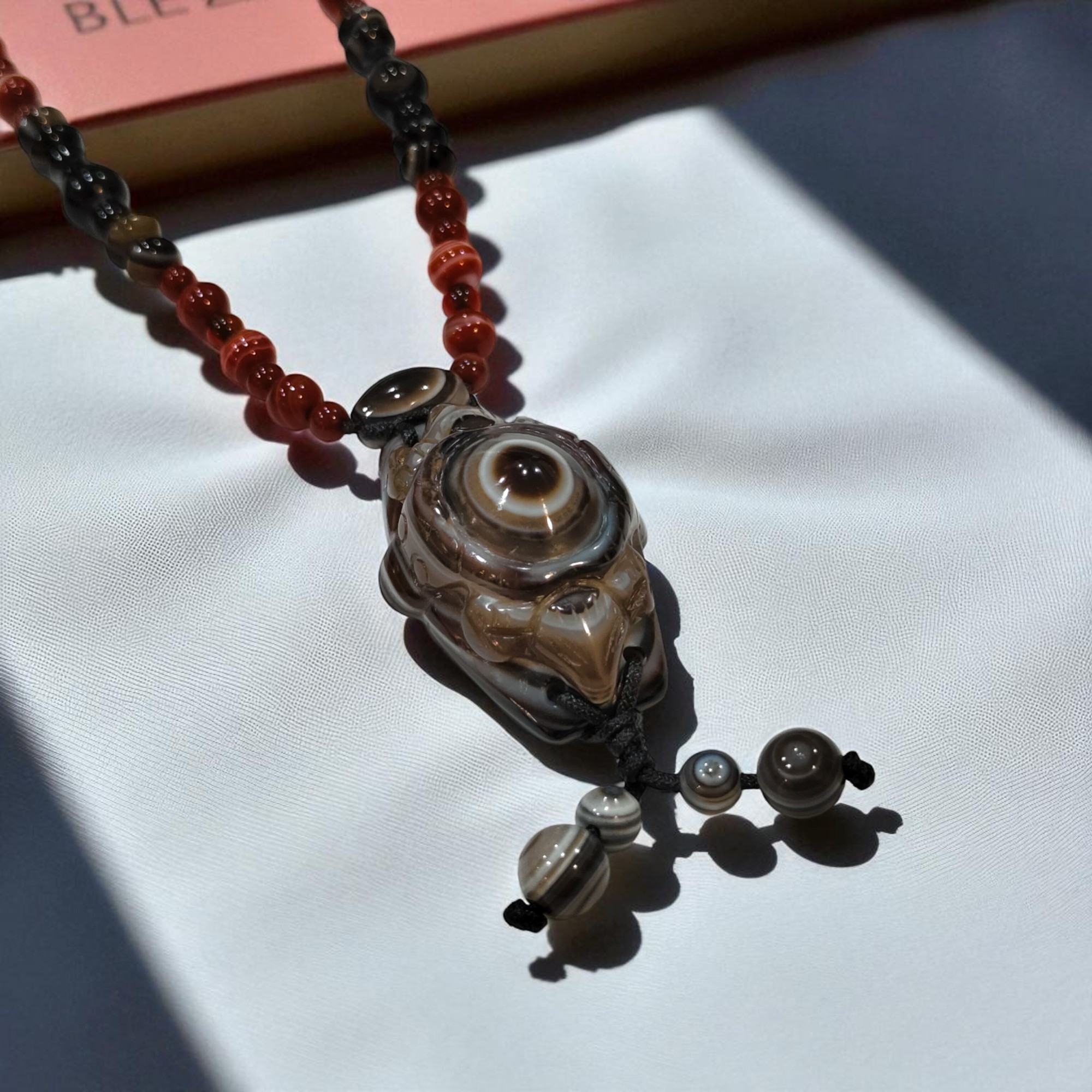 總之,天然瑪瑙天眼天珠是一種具有悠久歷史和獨特文化意義的寶石,其獨特的眼狀紋飾和神秘的能量使其成為備受推崇的護身符和收藏品。