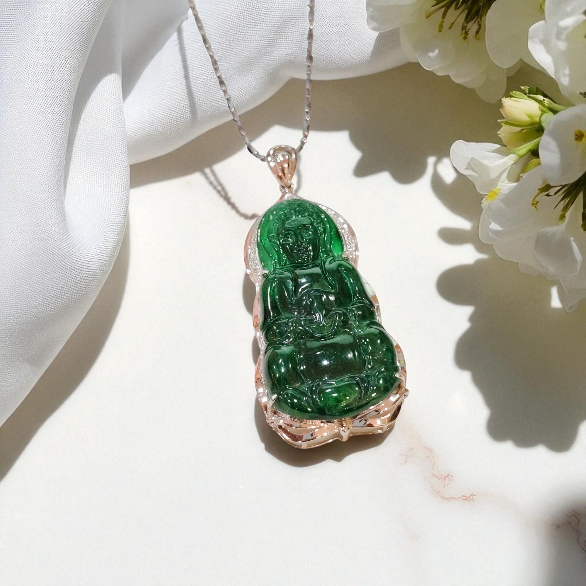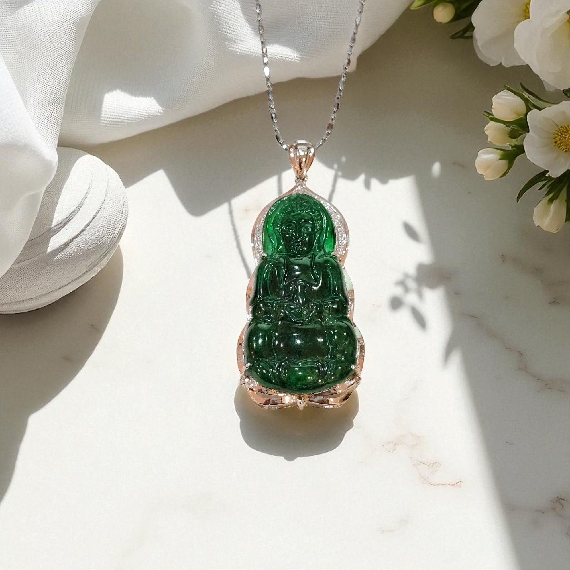 天然A獲翡翠觀音吊墜