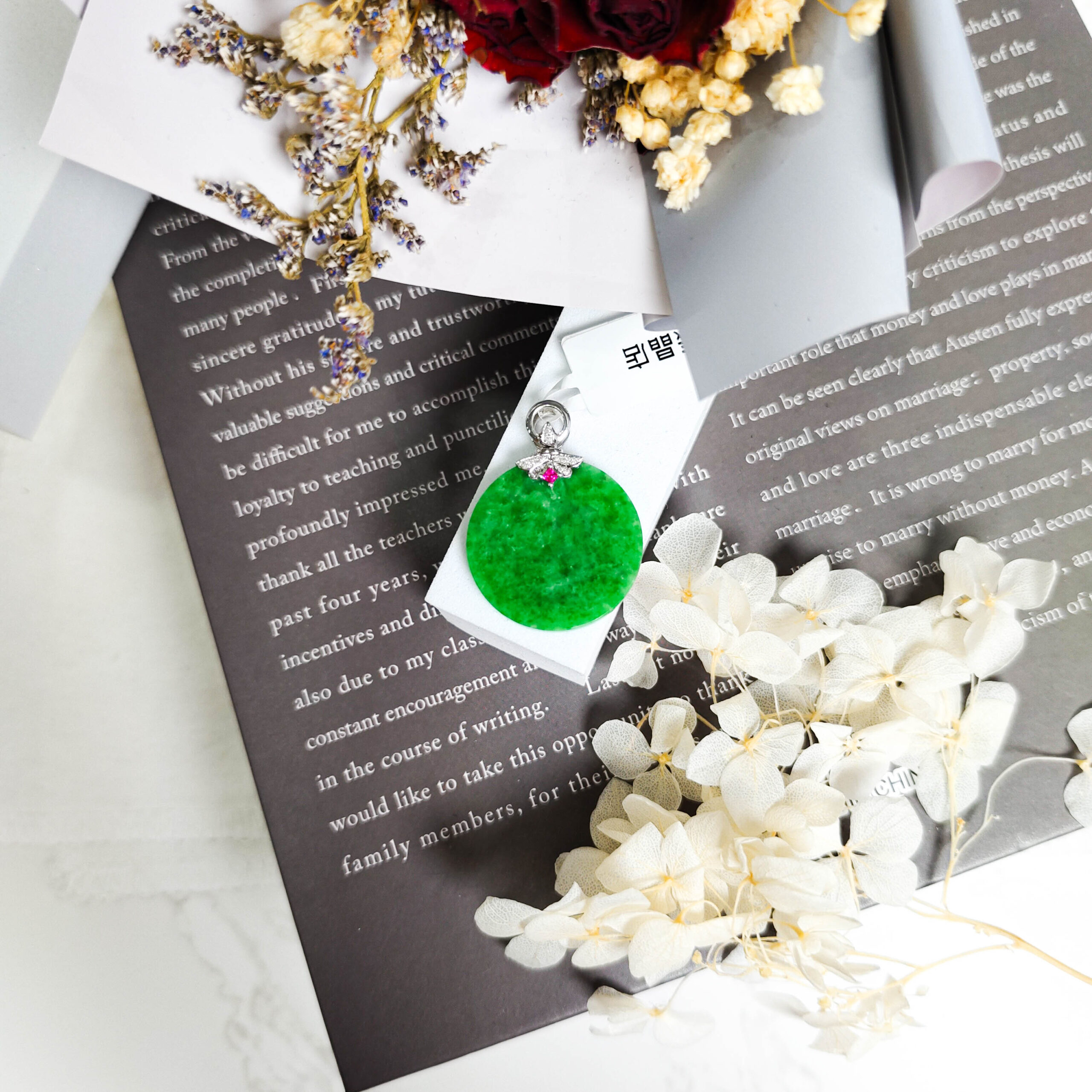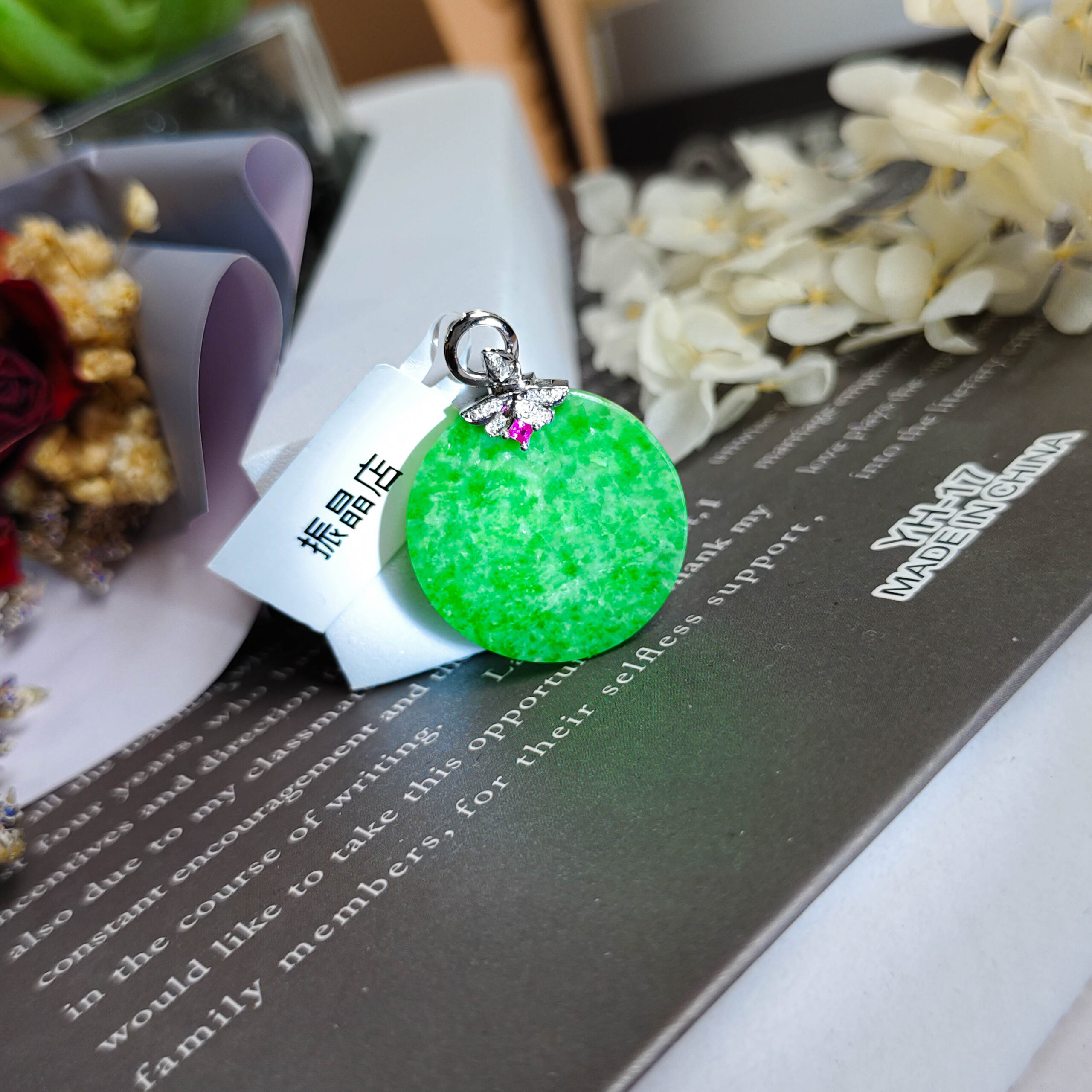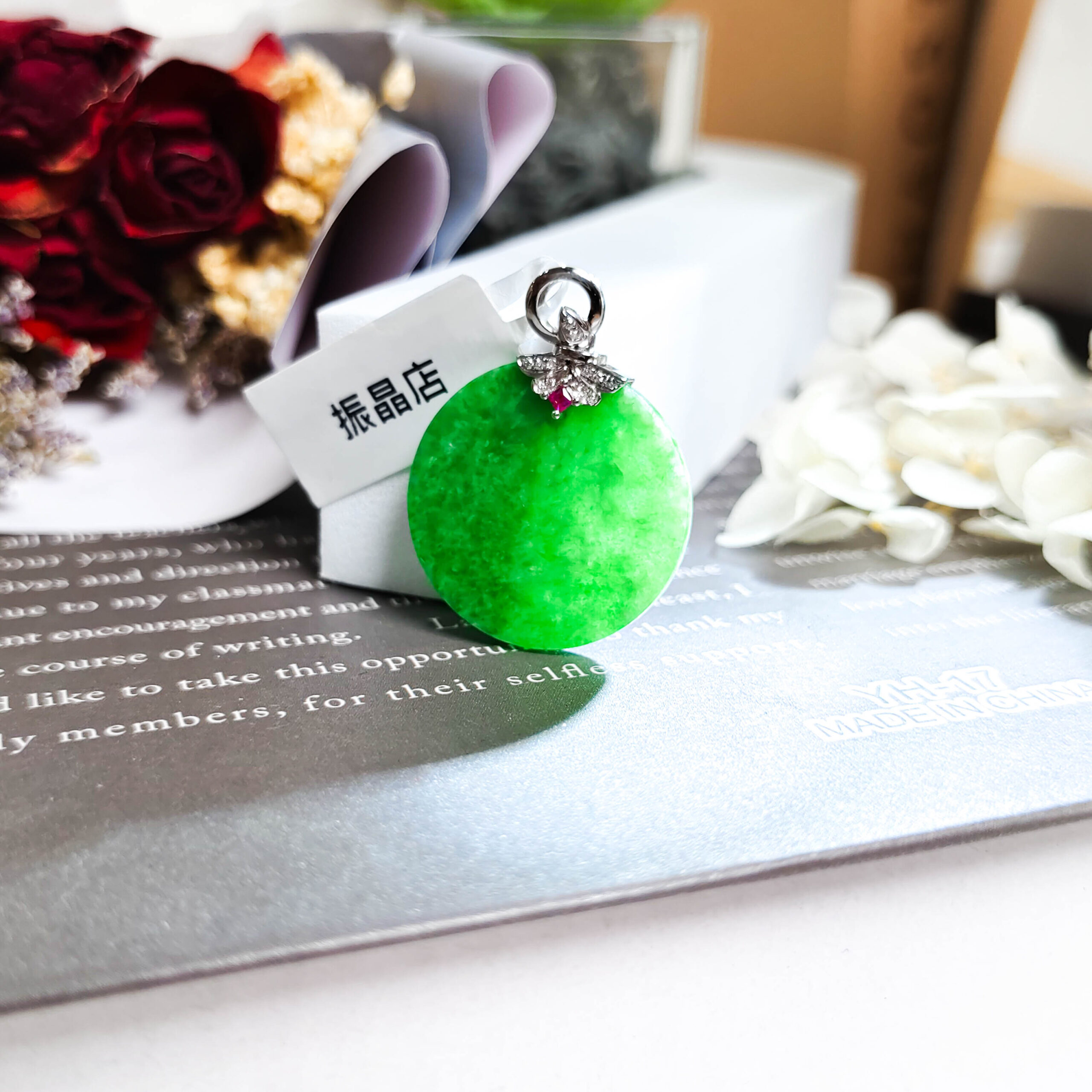 天然翡翠圓月牌吊墜18K