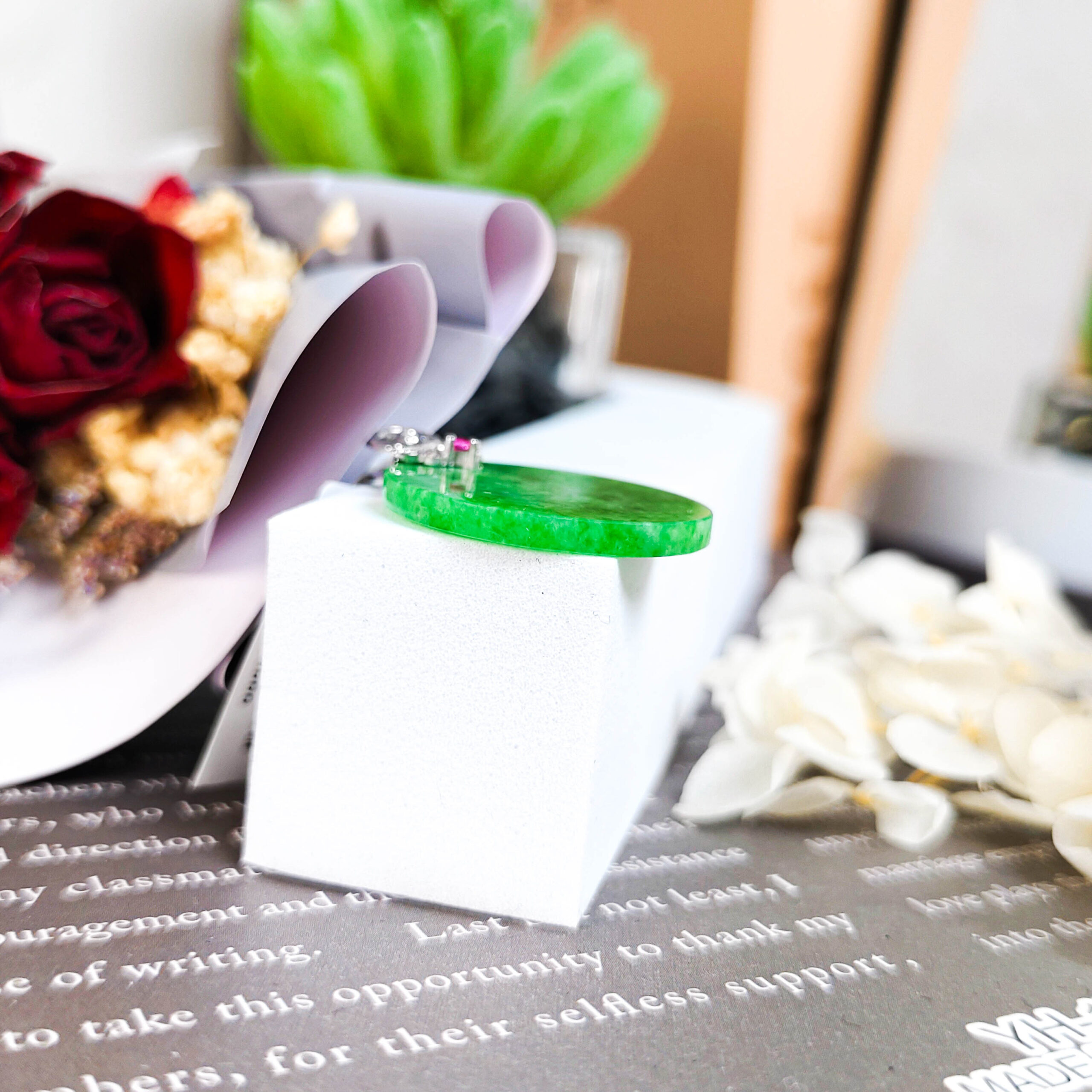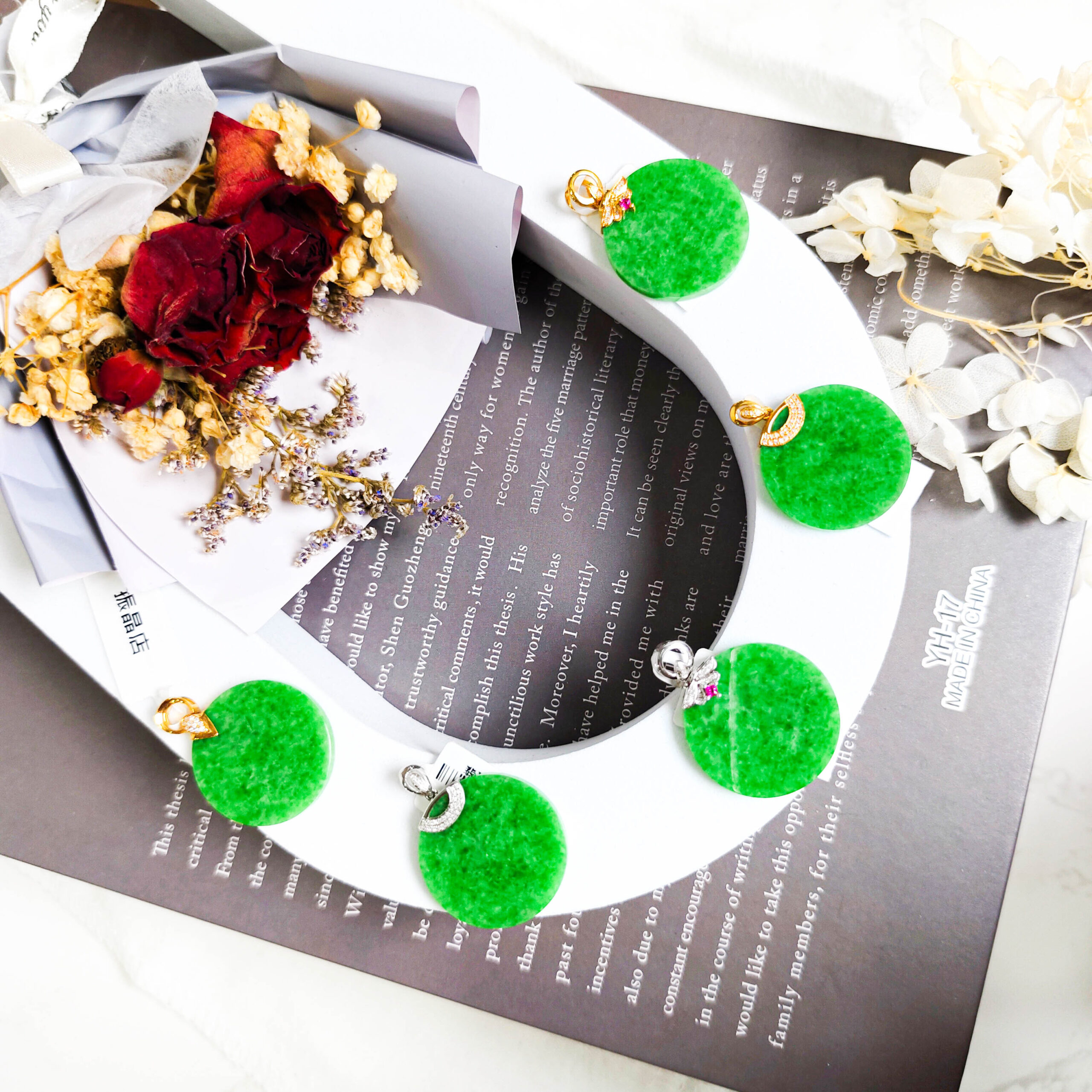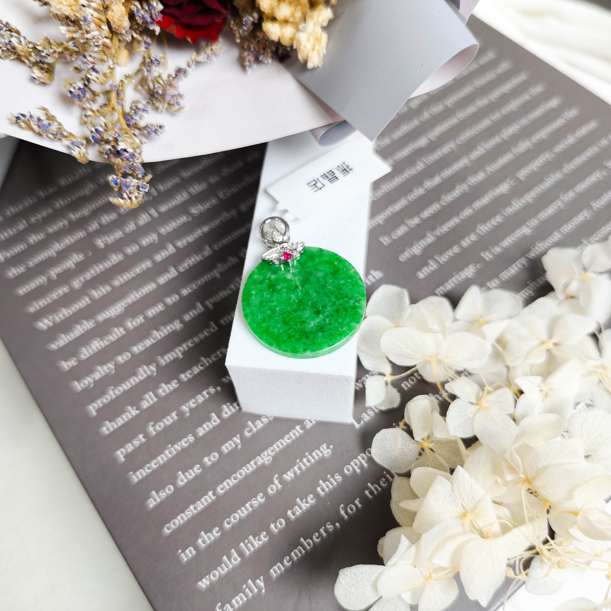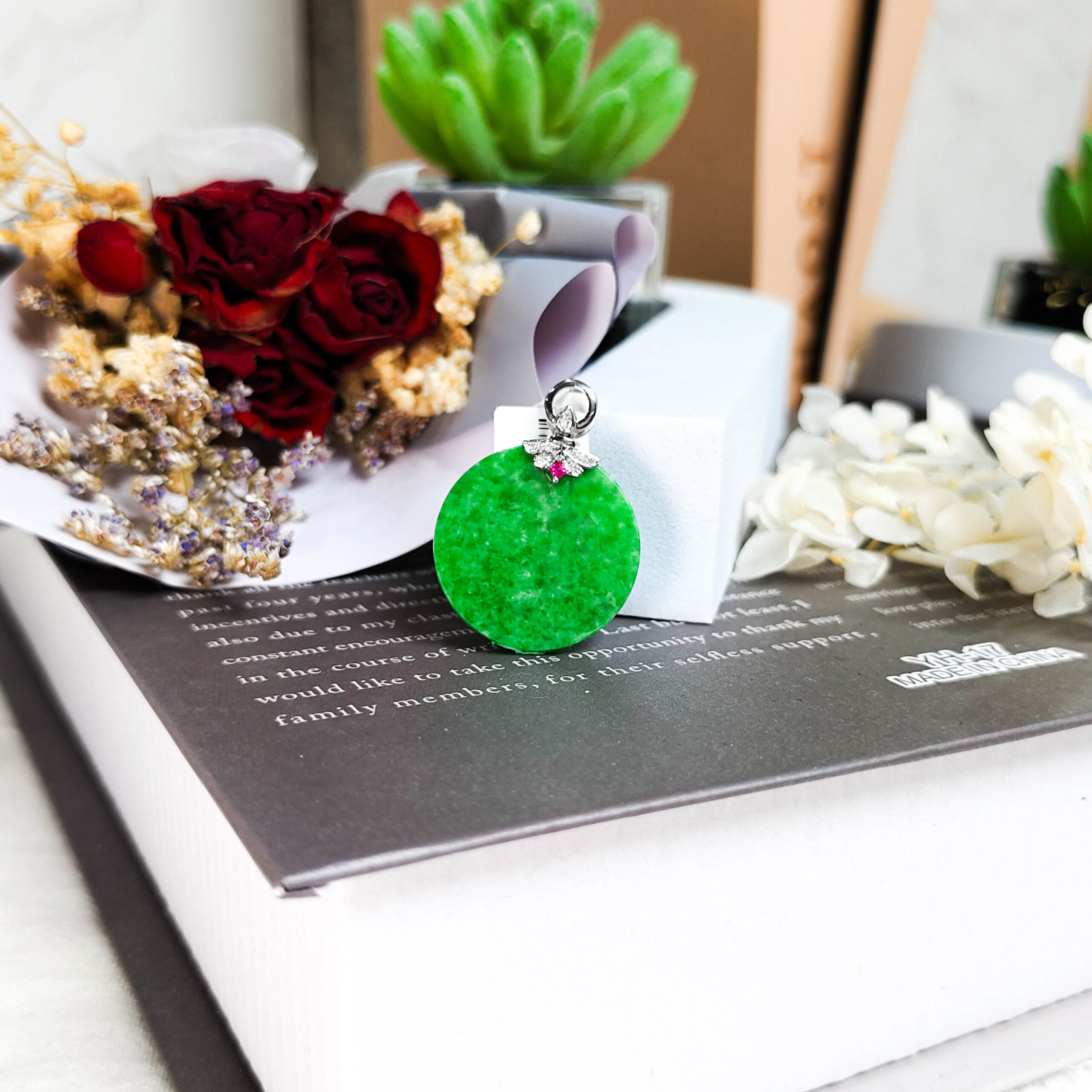 天然翡翠圓月牌吊墜18K