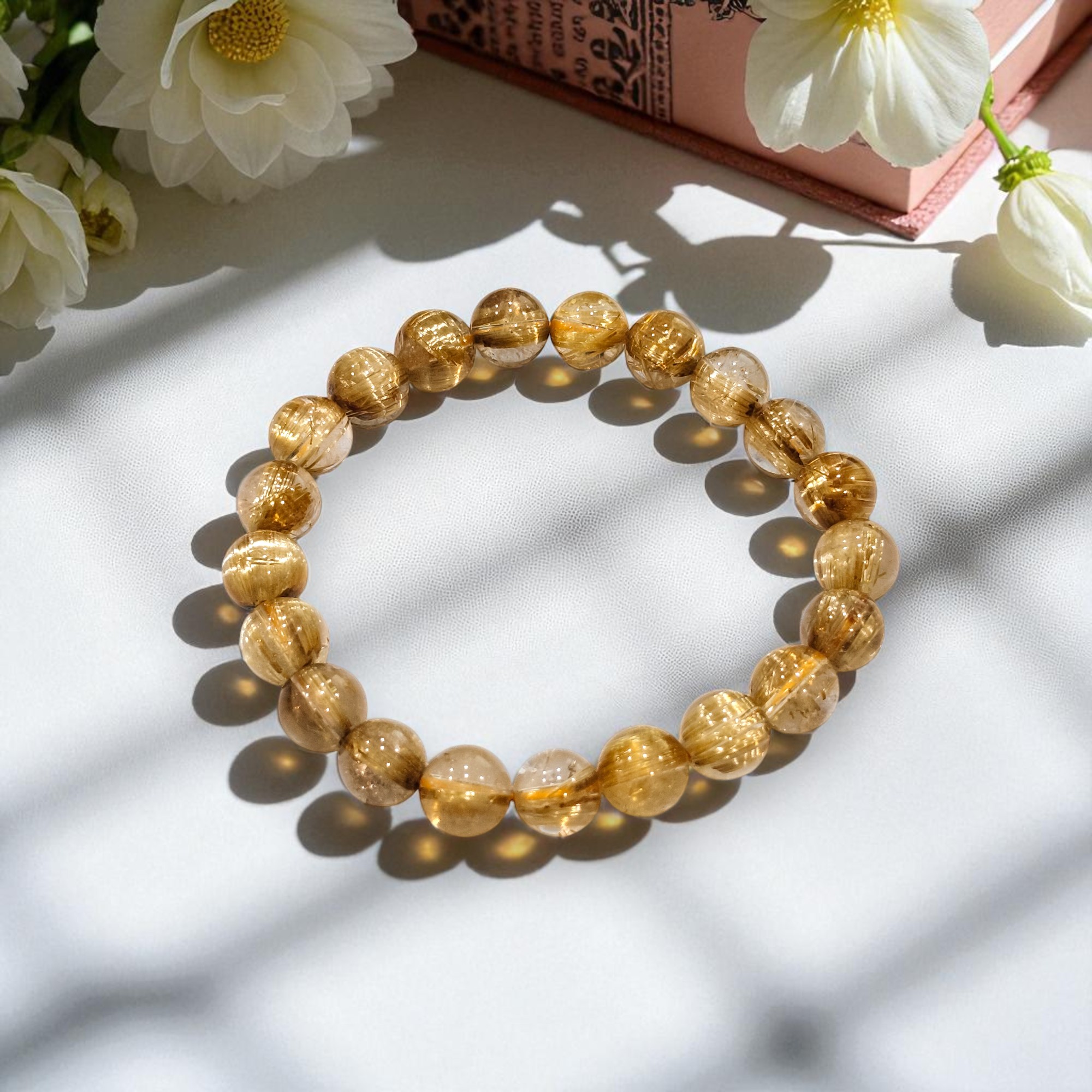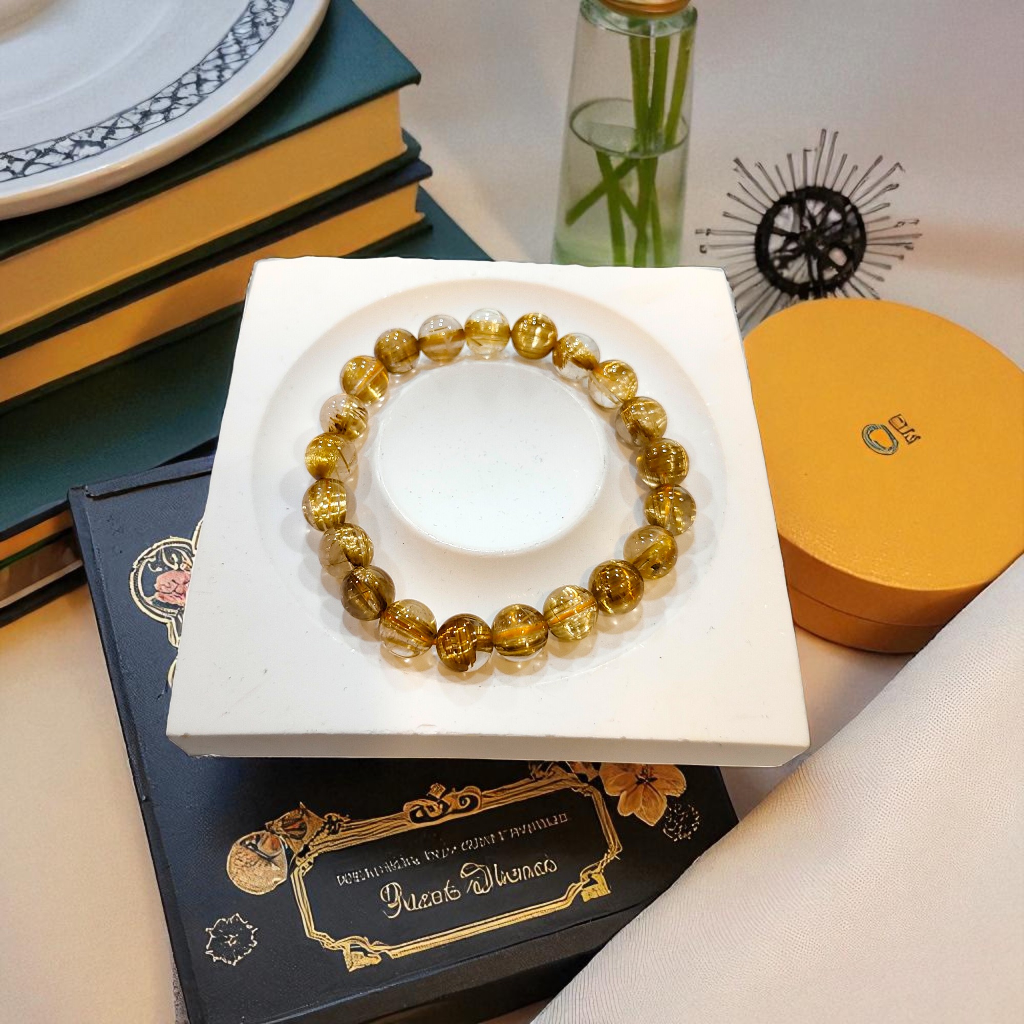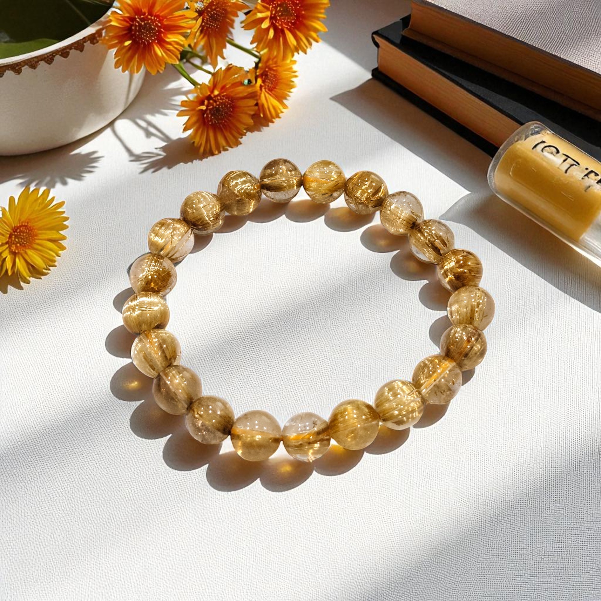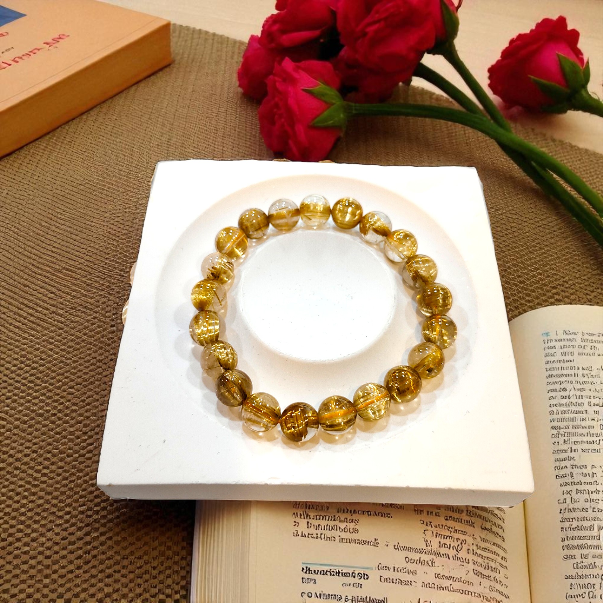 3. 鈦晶:又稱「金髮晶」,內含金黃色的針狀包裹體,象徵財富與貴人緣,有助於開拓財源、提升事業運。