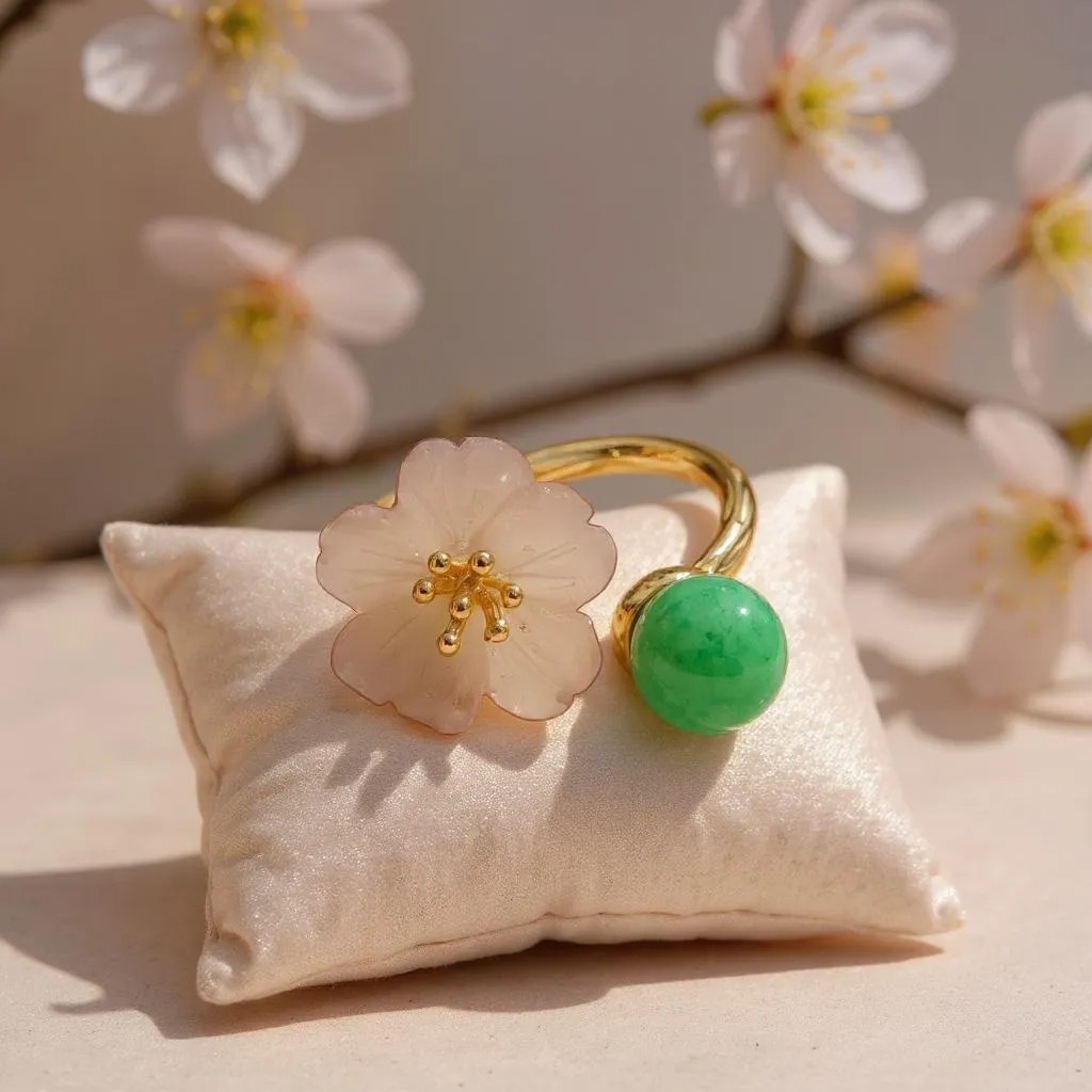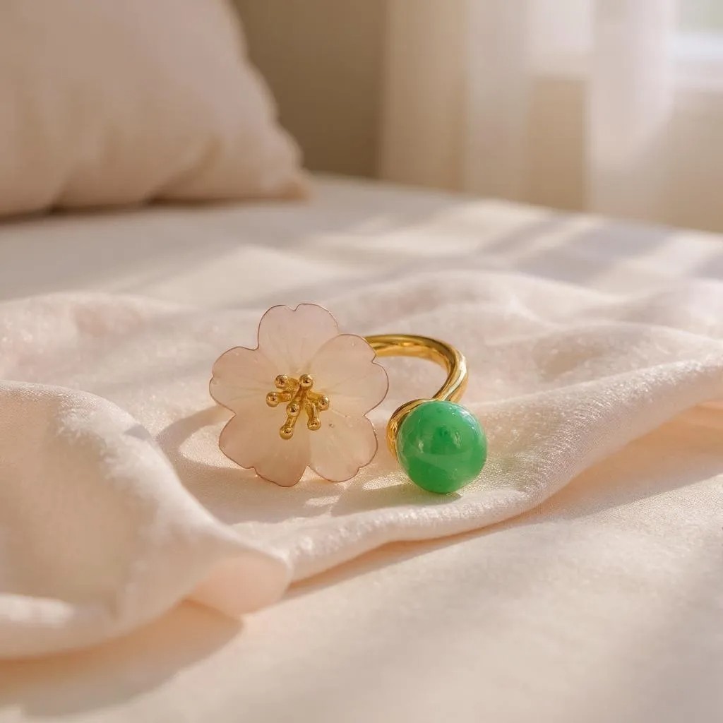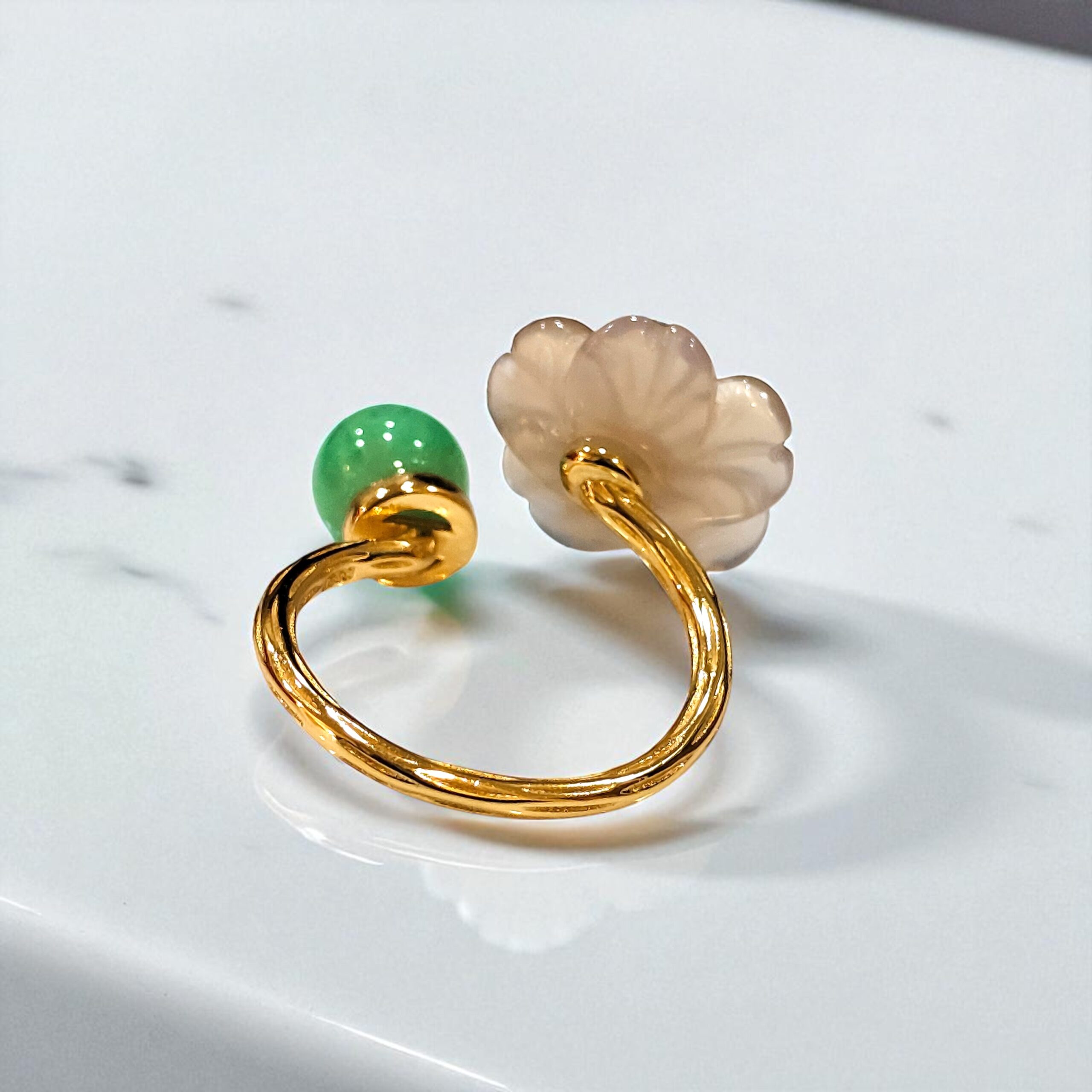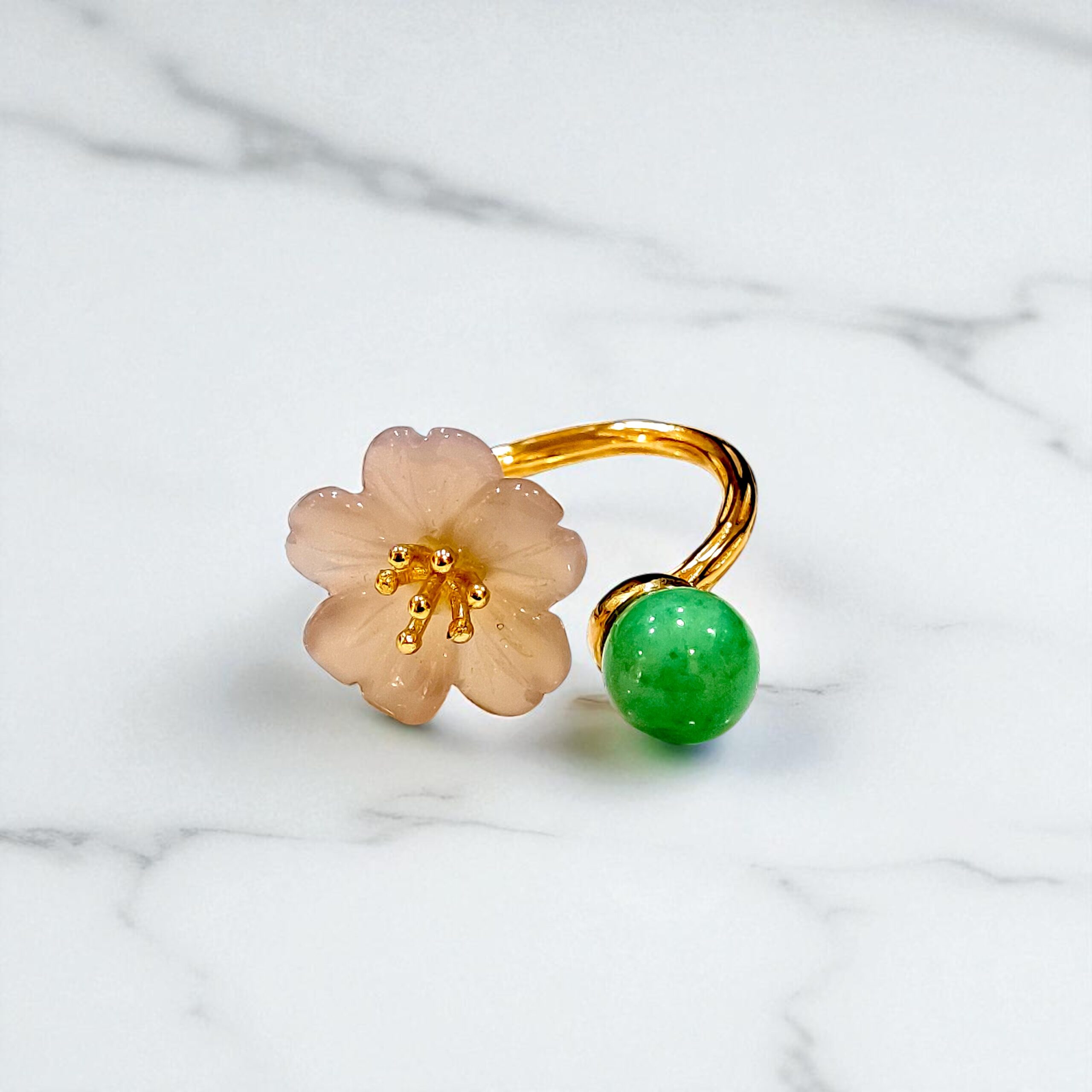 天然A貨翡翠玉髓小花戒