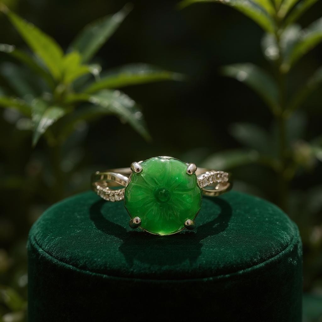 翡翠梅花主石 : 10mm x  10mm x 2.4mm