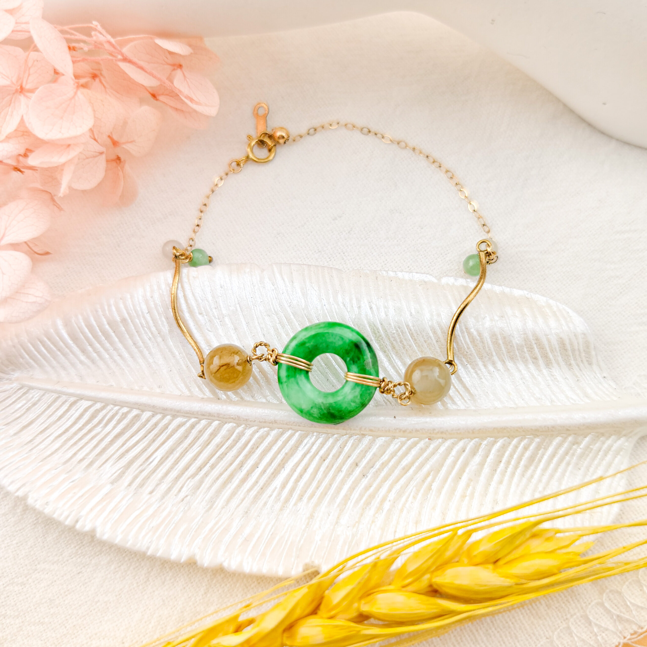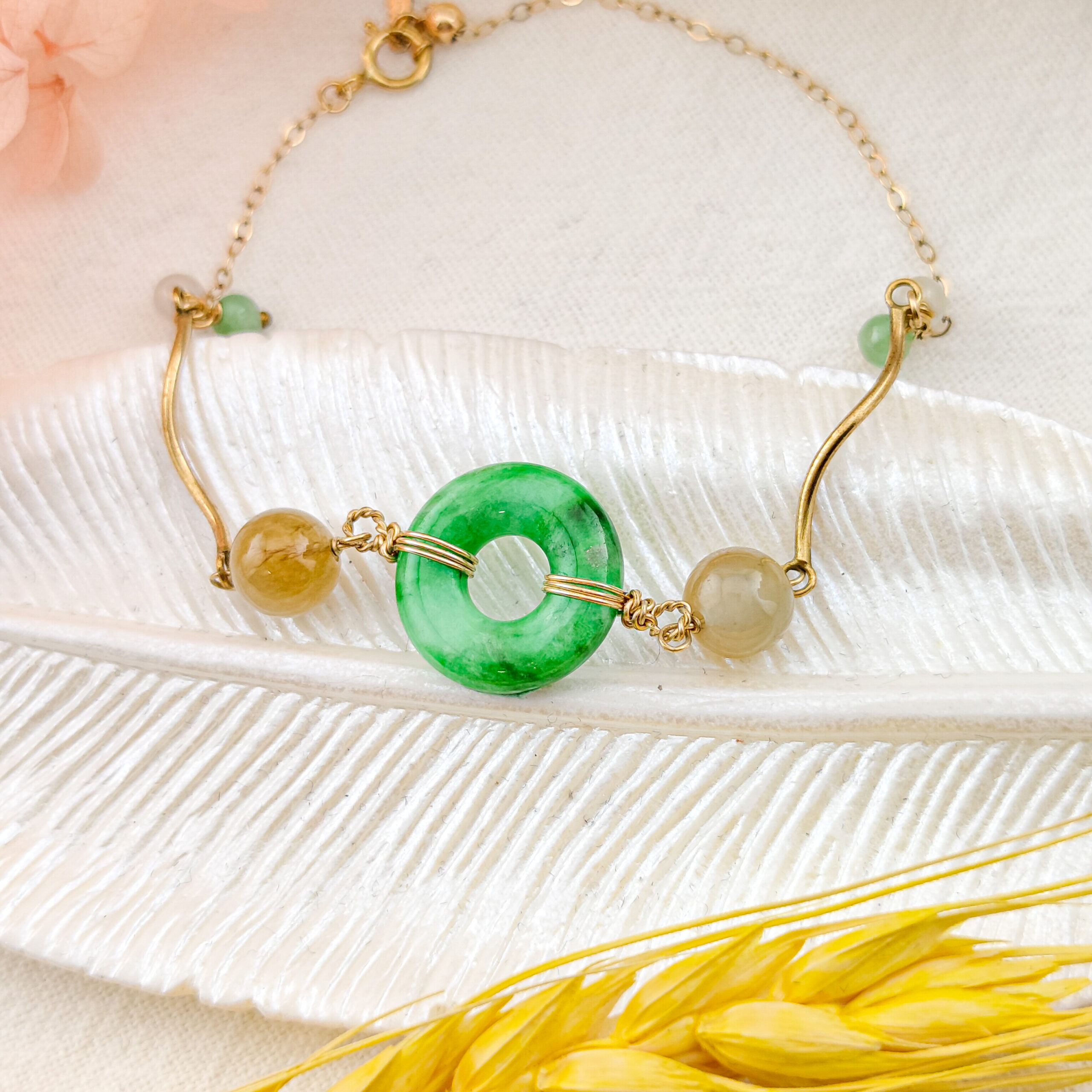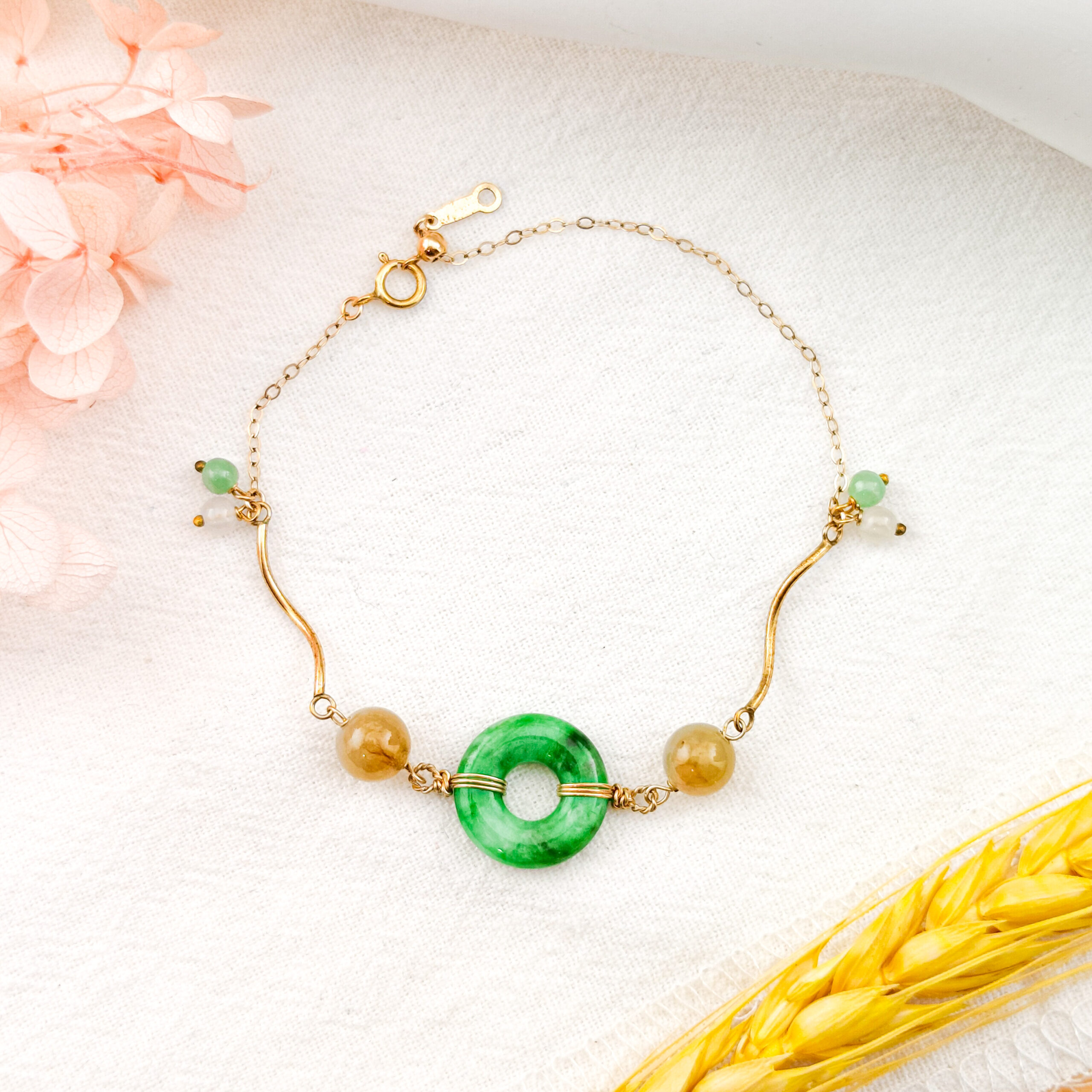 天然翡翠A貨手鍊14K