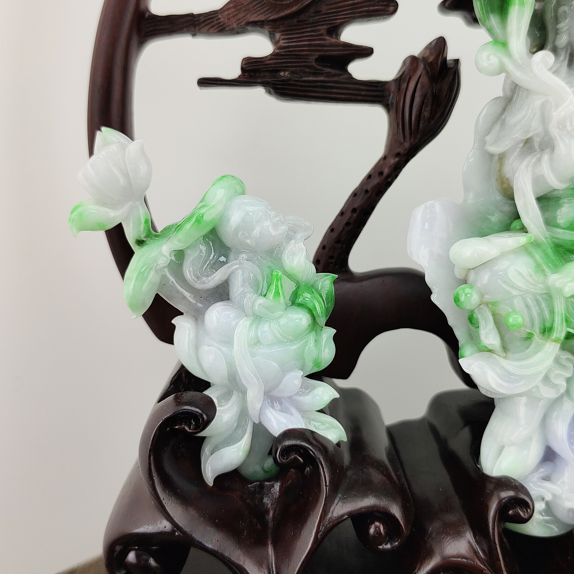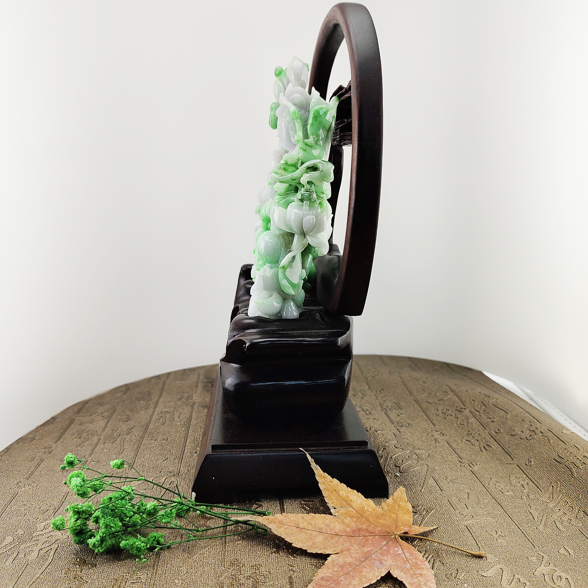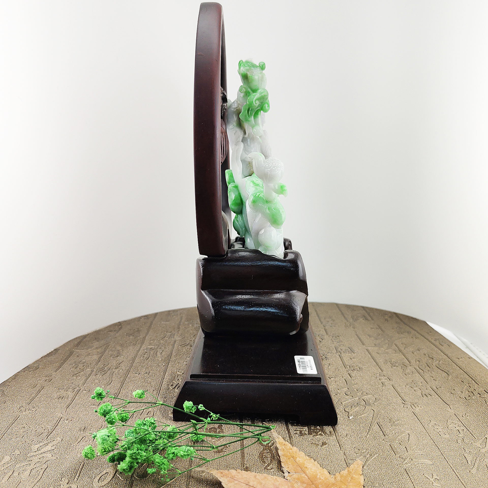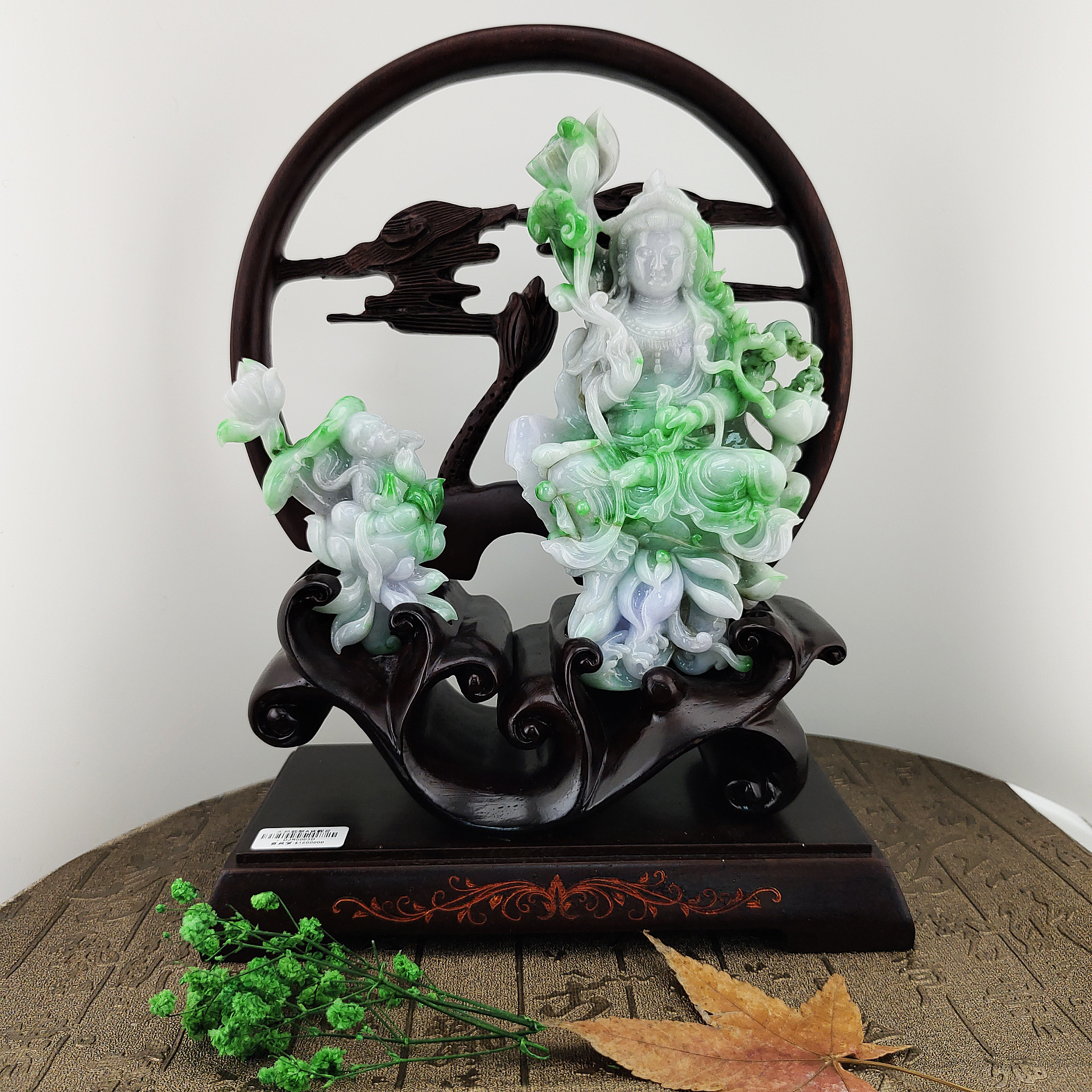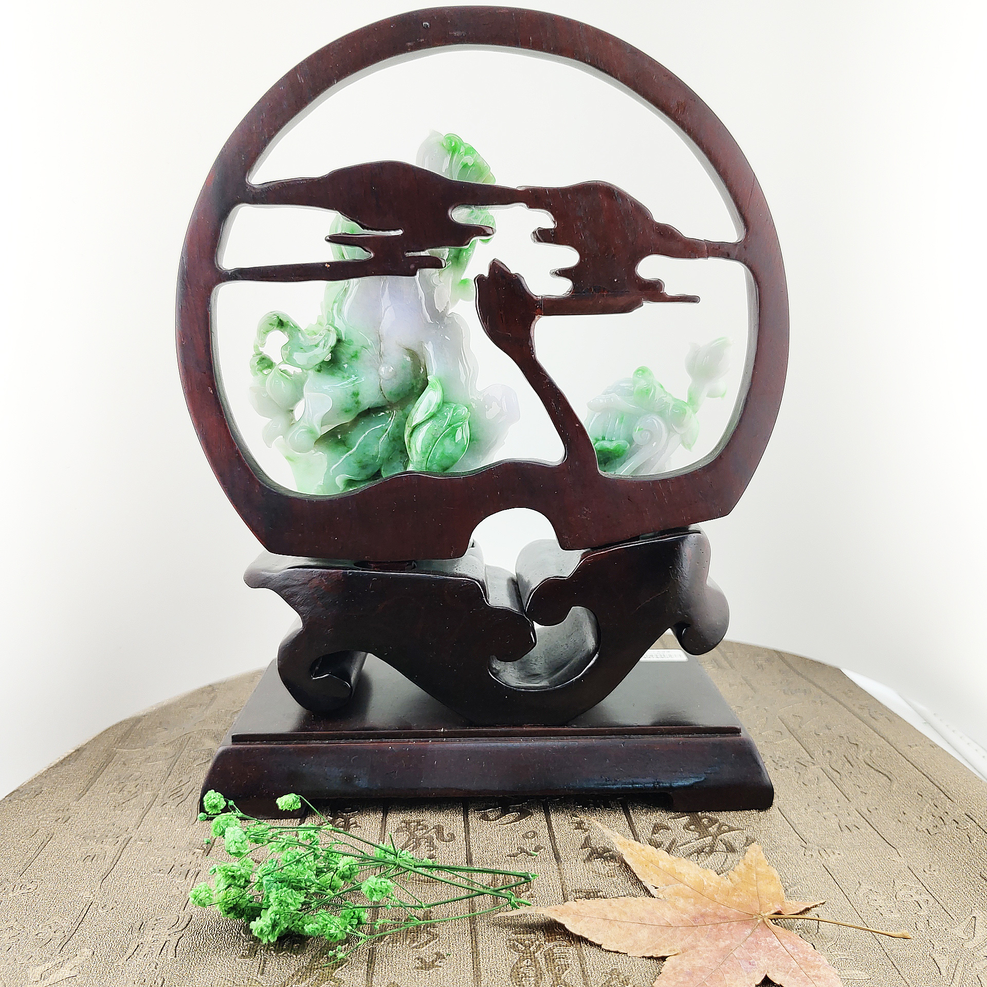 常見的各種翡翠色調有綠色、無色、白色、 黑色、紫色、藍色、粉紅色及黃色、紅色等,經過雕琢的翡翠帶有玻璃光澤及油脂光澤。選擇翡翠時應注意其種質、厚度、顏色深淺和均勻度、透明度及雕刻工藝等。