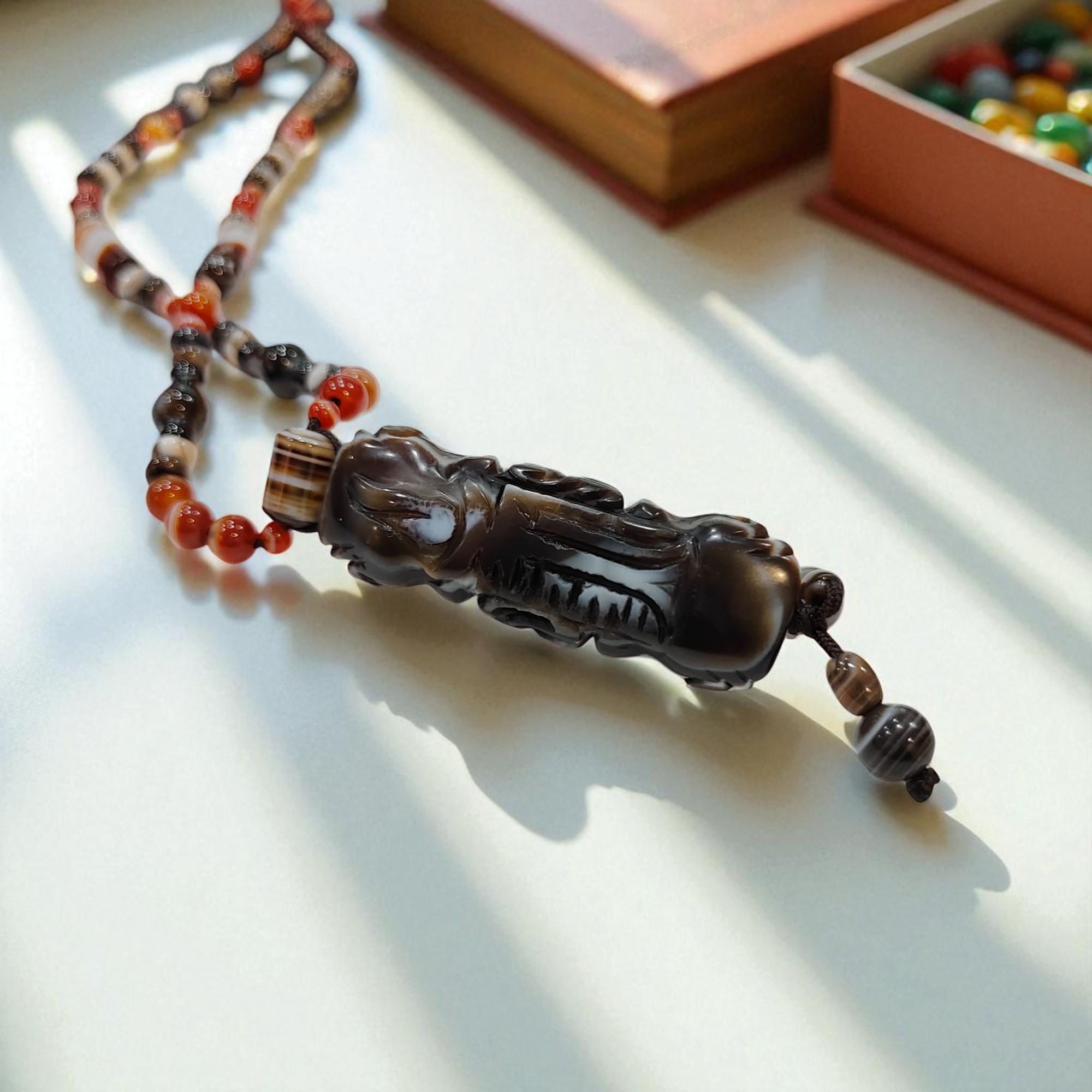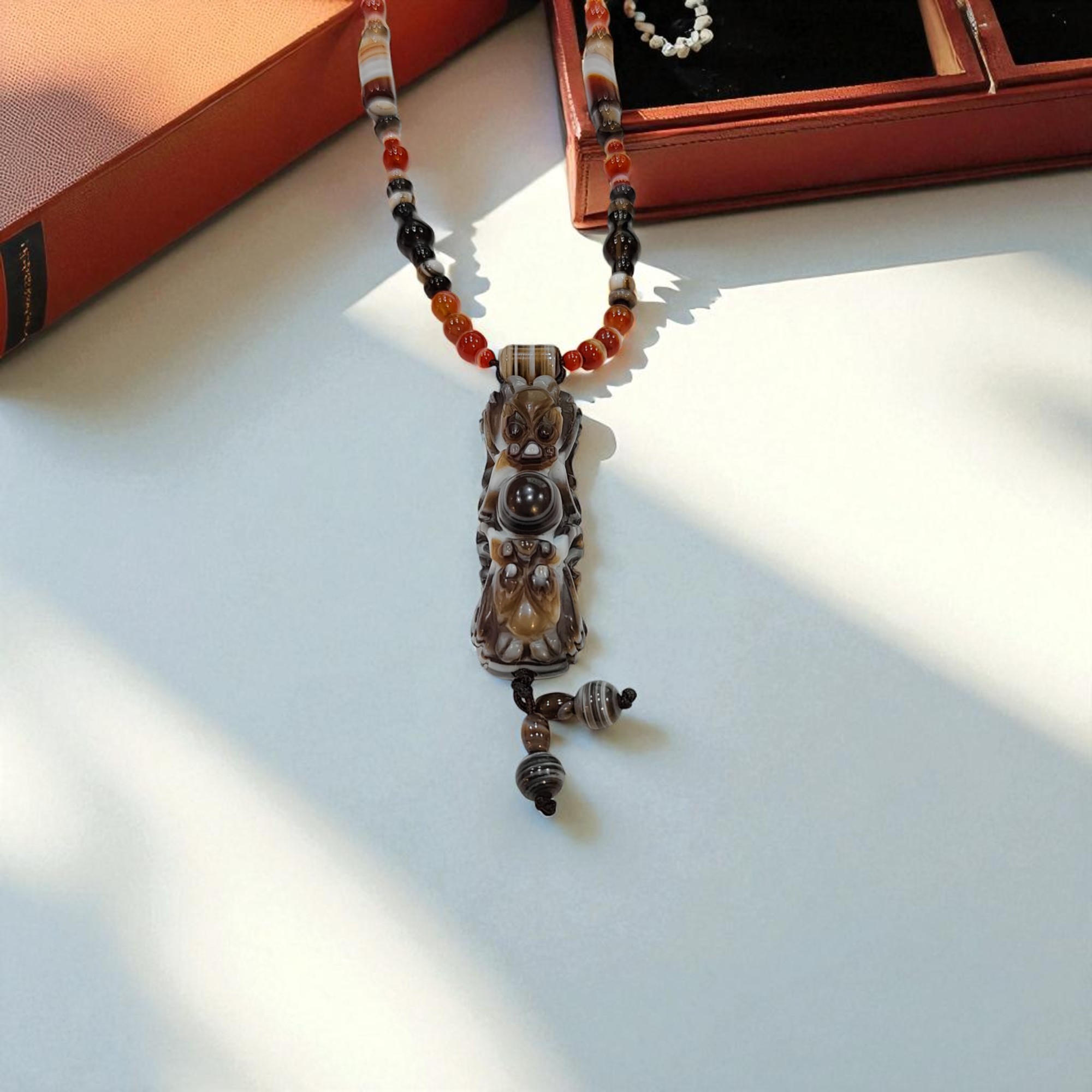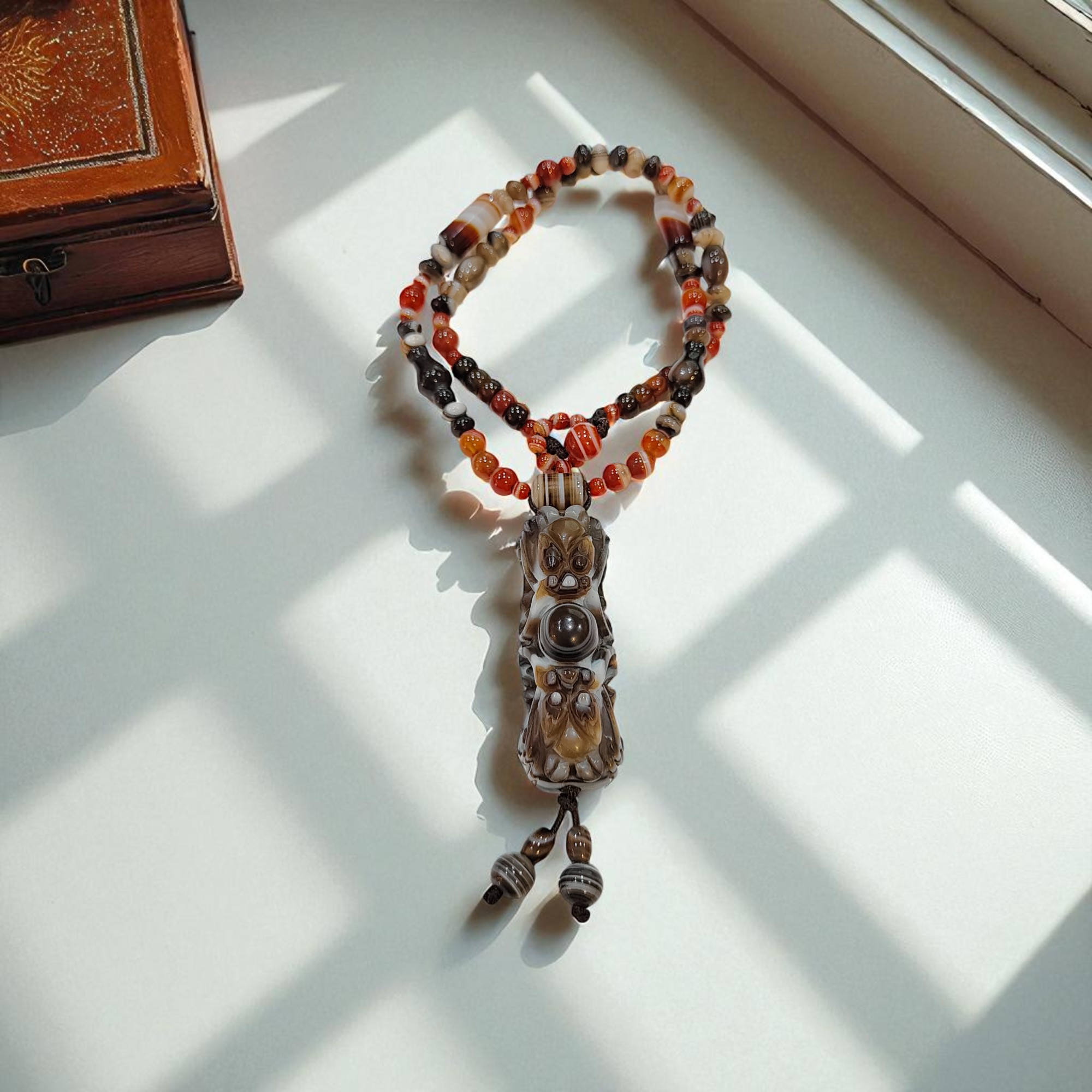 總之,天然瑪瑙天眼天珠是一種具有悠久歷史和獨特文化意義的寶石,其獨特的眼狀紋飾和神秘的能量使其成為備受推崇的護身符和收藏品。