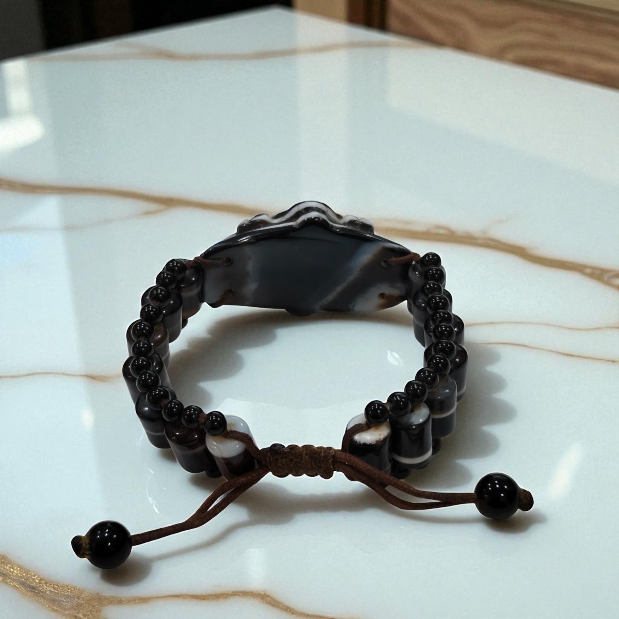 總之,天然瑪瑙天眼天珠是一種具有悠久歷史和獨特文化意義的寶石,其獨特的眼狀紋飾和神秘的能量使其成為備受推崇的護身符和收藏品。