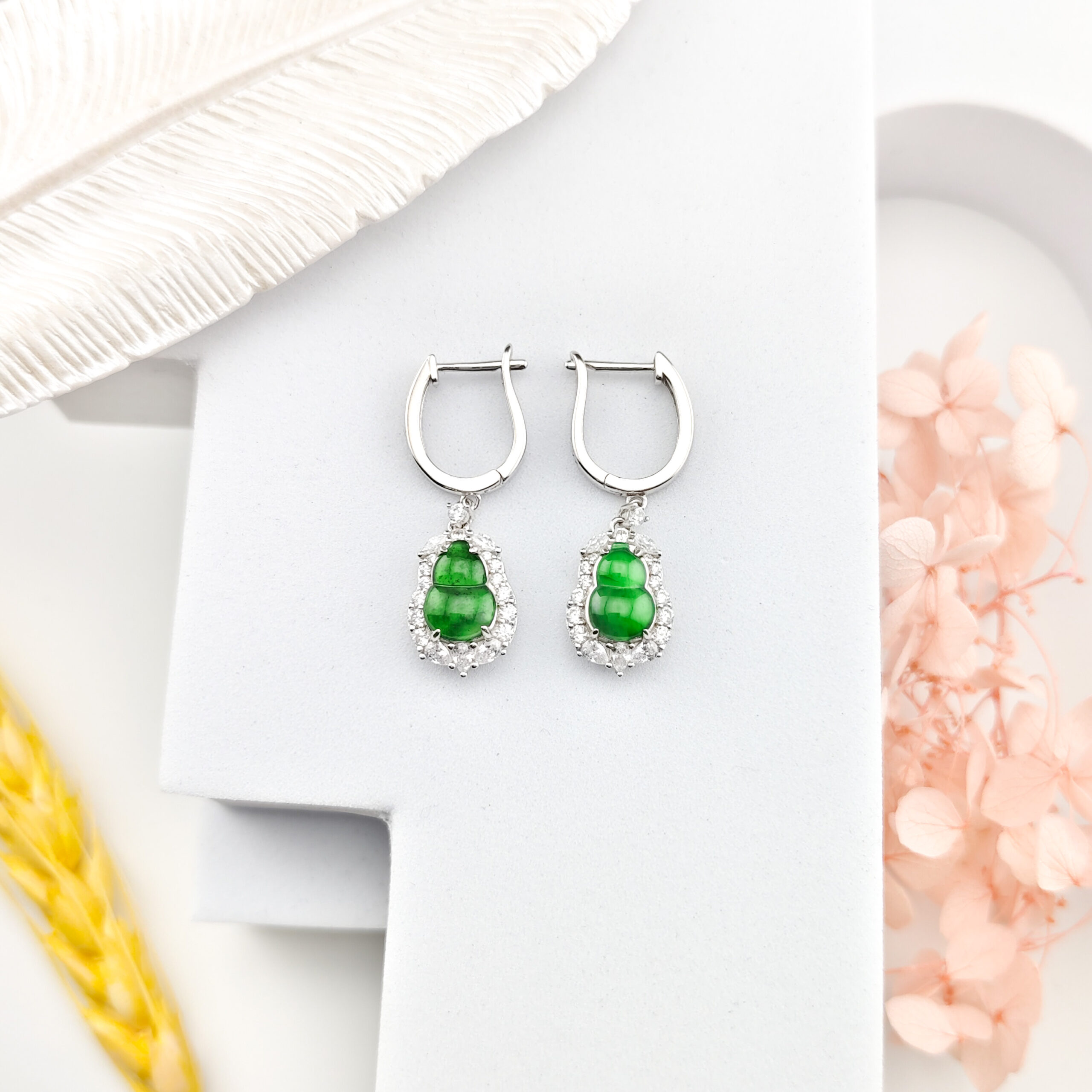 天然翡翠A貨葫蘆耳環