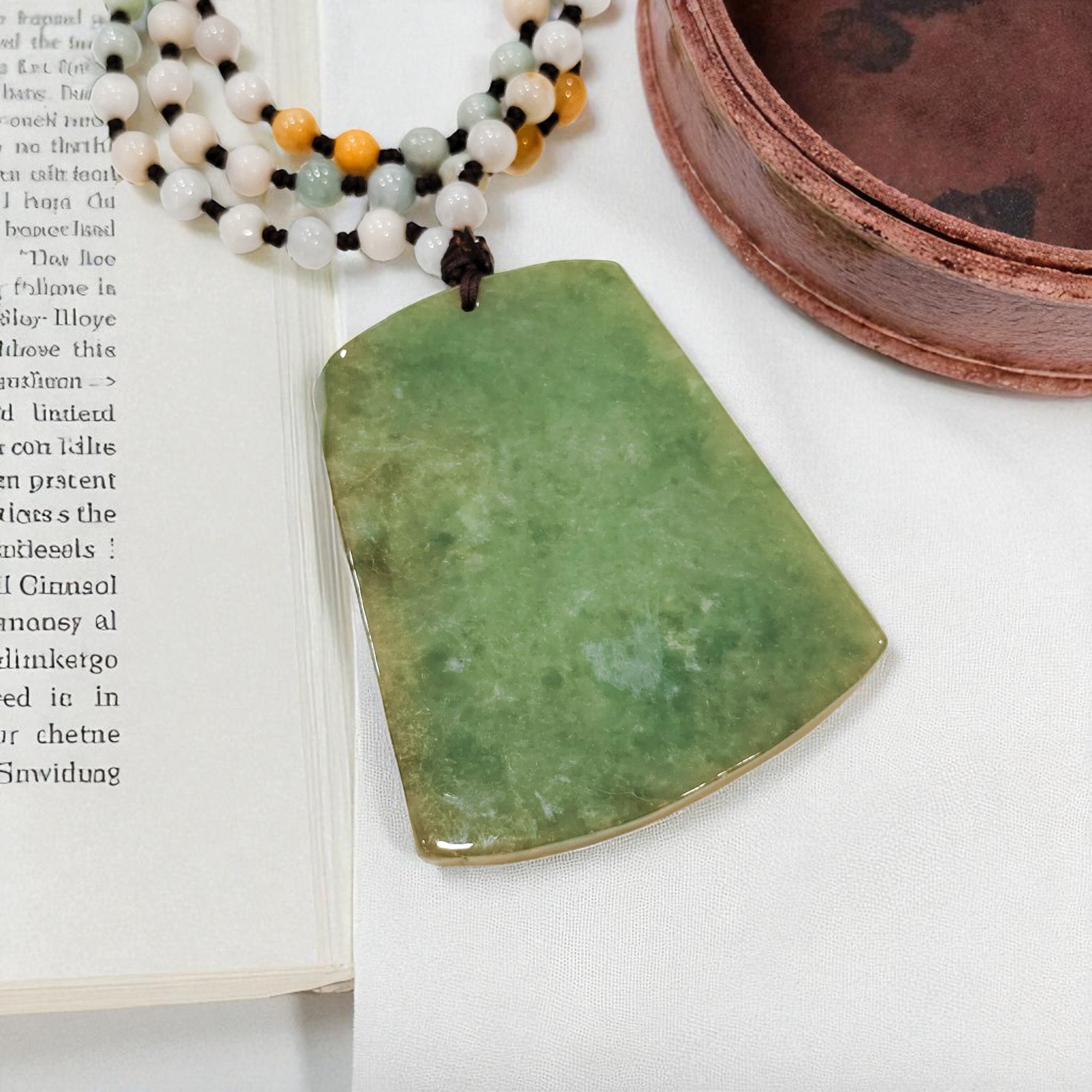 常見的各種翡翠色調有綠色、無色、白色、 黑色、紫色、藍色、粉紅色及黃色、紅色等,經過雕琢的翡翠帶有玻璃光澤及油脂光澤。選擇翡翠時應注意其種質、厚度、顏色深淺和均勻度、透明度及雕刻工藝等。