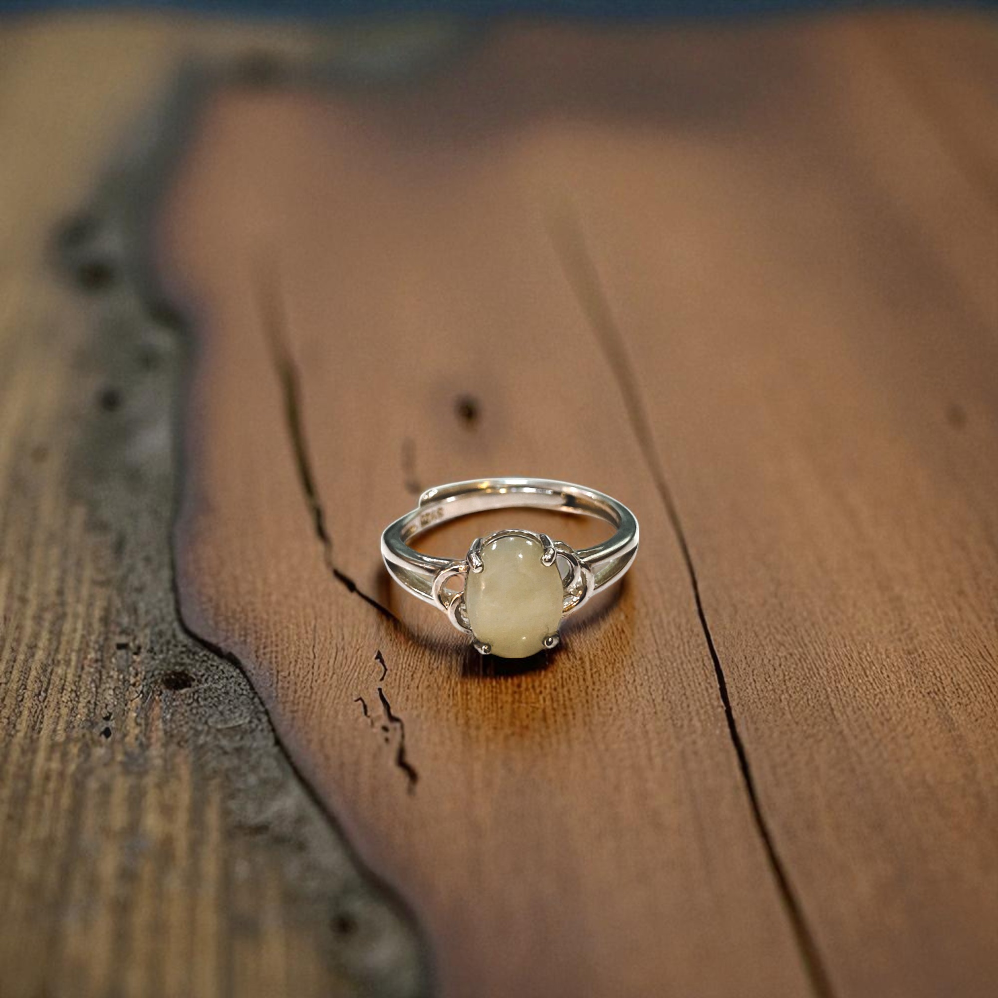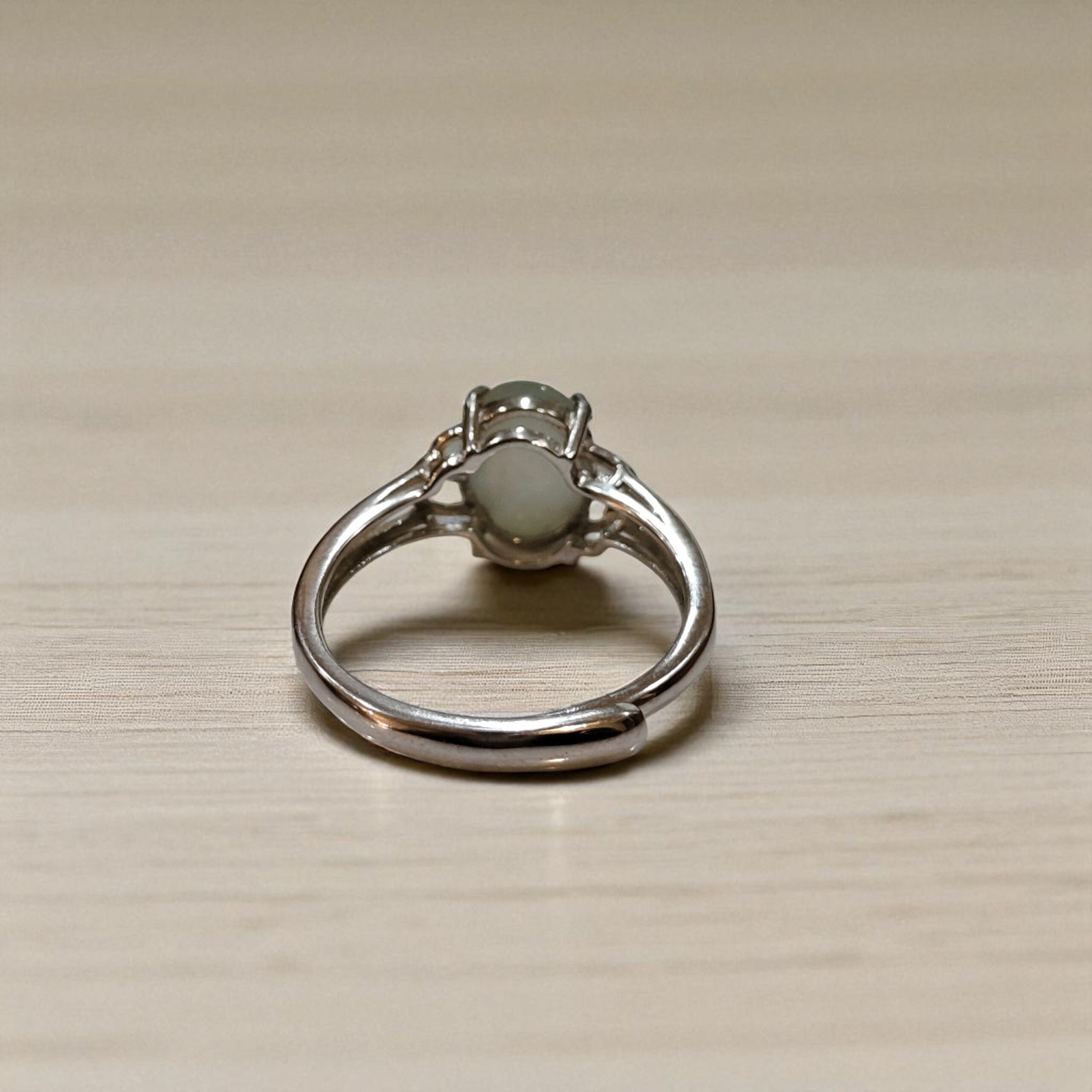 天然A貨翡翠白蛋面戒指