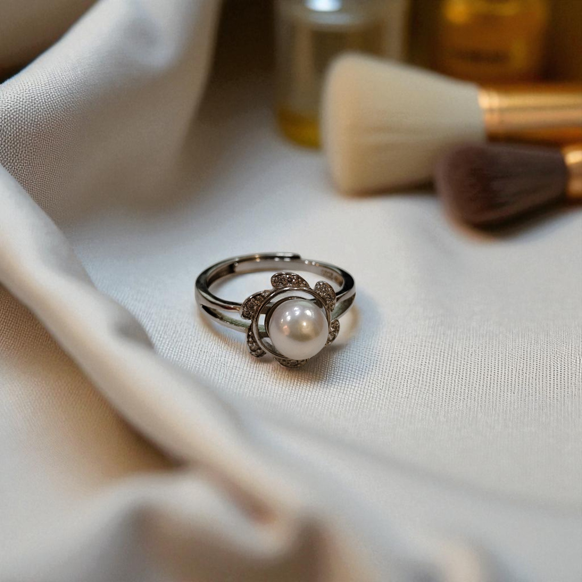 天然珍珠銀飾戒指