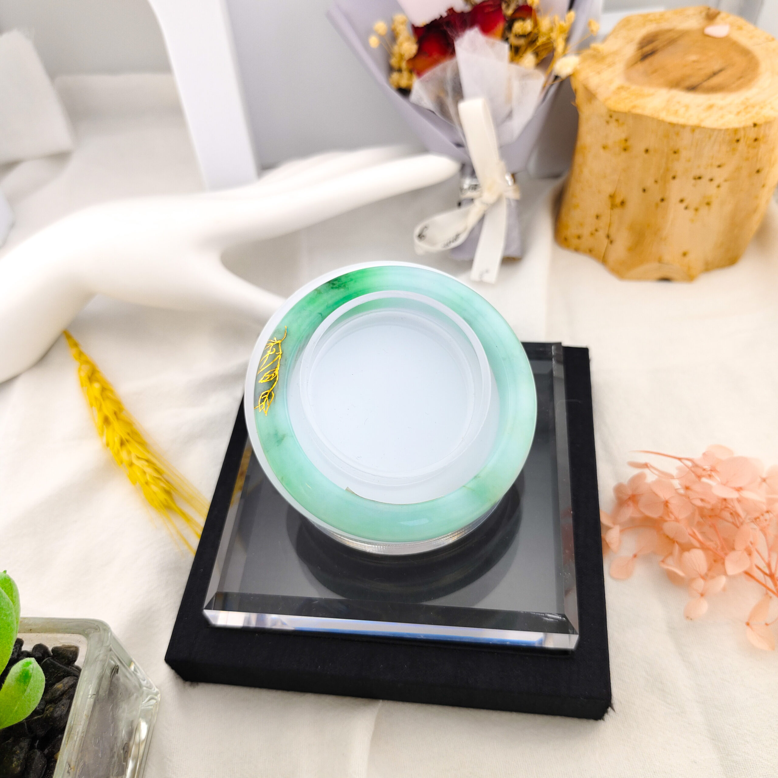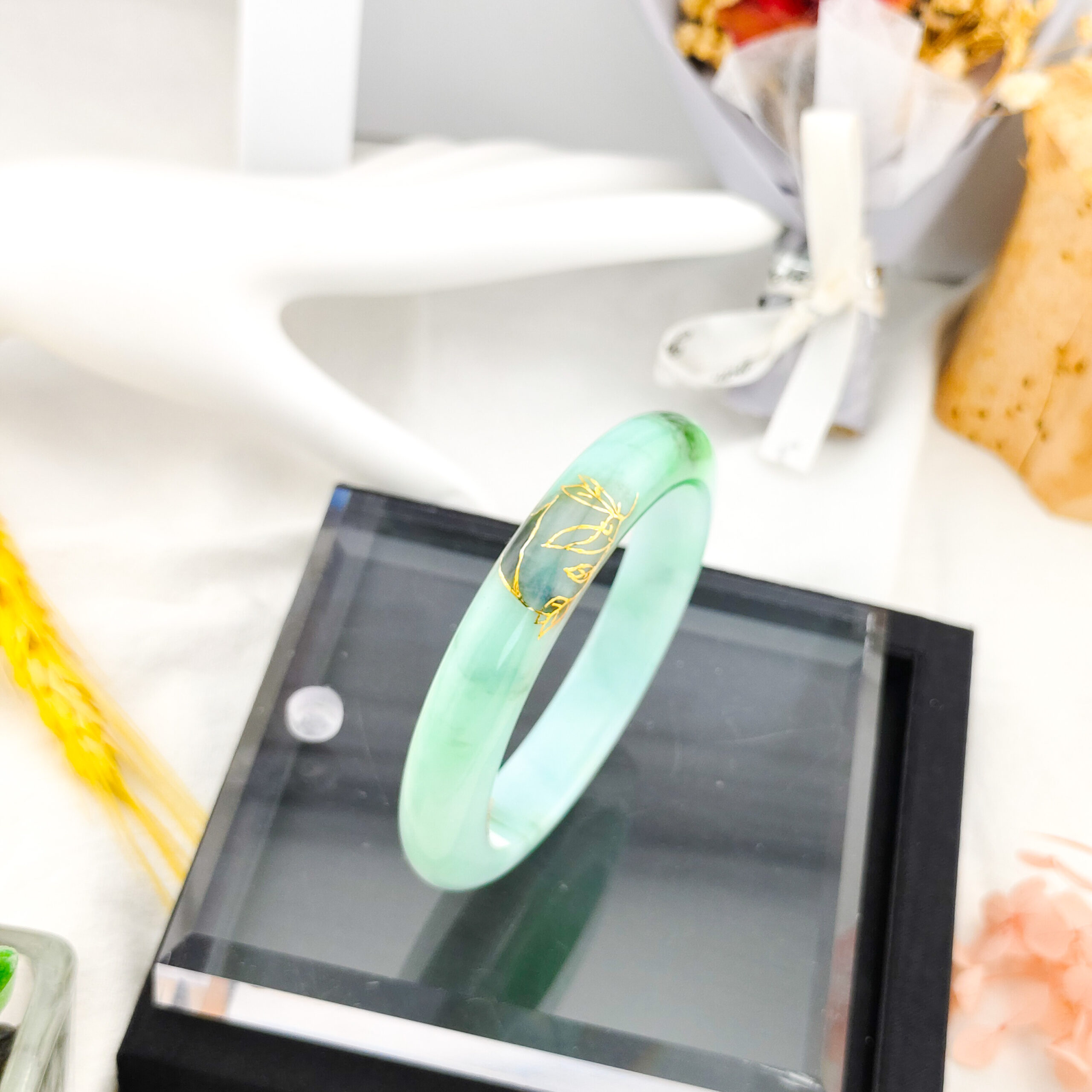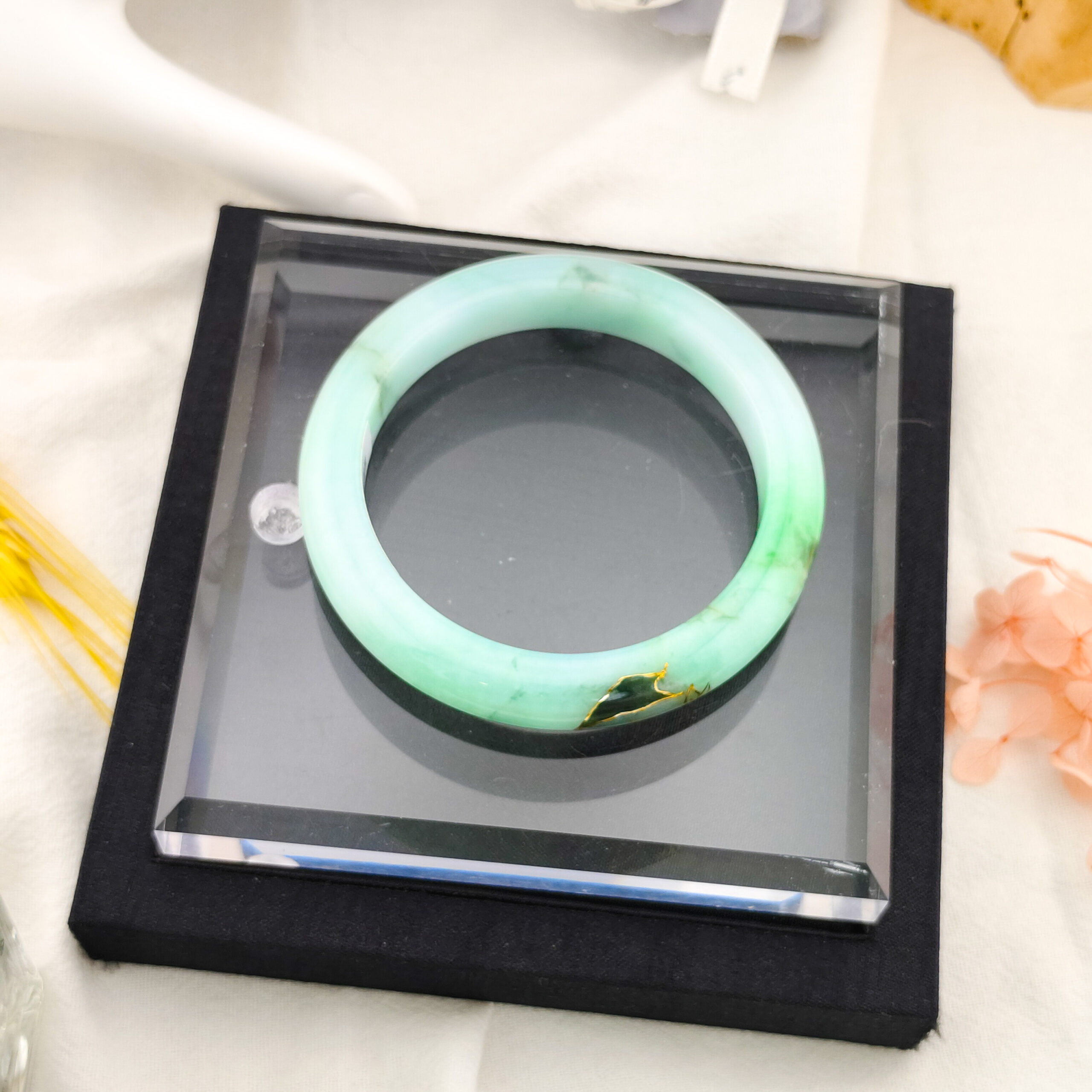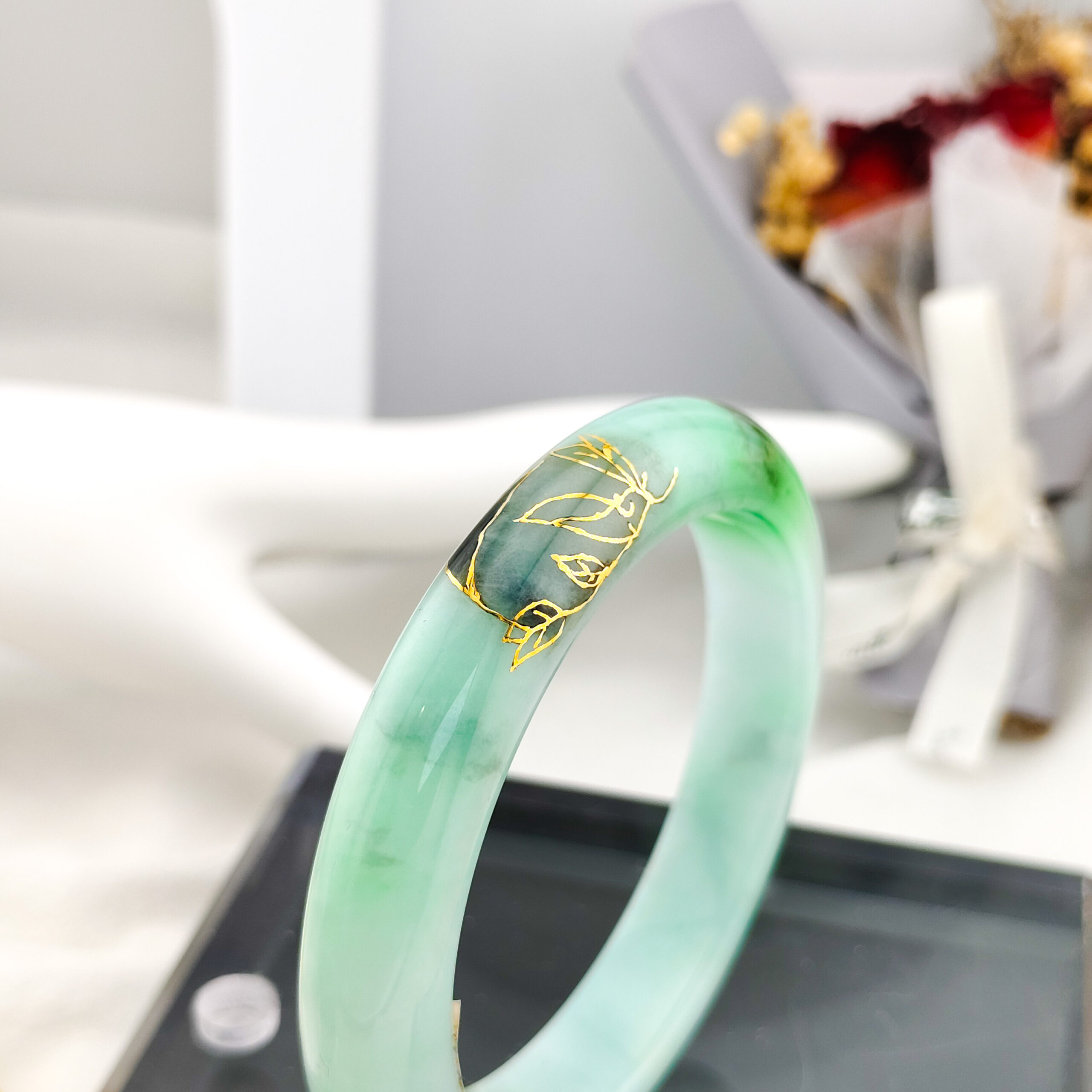 天然翡翠A貨描金手鐲18.1圍