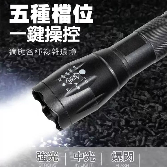 5檔調光,可伸縮變焦,附充電底座,持久續航;便攜設計,蓮花攻擊頭,關鍵時刻可破窗自救。