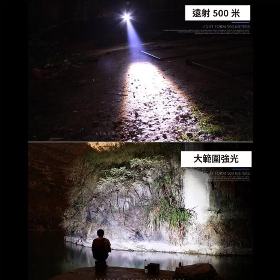 筒身採用高強度鋁合金,耐摔方便攜帶;升級T6高亮燈芯,強光遠射高達500米;